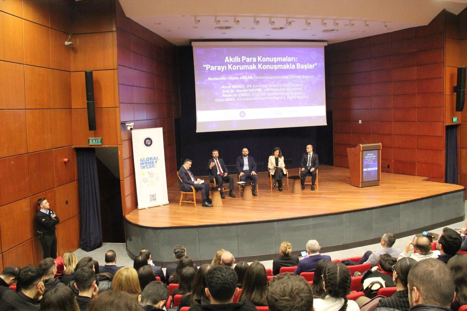 Küresel Para Haftası kapsamında 'Akıllı Para Konuşmaları: Parayı Korumak Konuşmakla Başlar' başlıklı panel gerçekleştirildi. Ekonomi Gazetecileri Derneği (EGD) Başkanı Hasan Arslan'ın moderatörlüğünde düzenlenen panelde; SPK Kurumsal İletişim Dairesi Başkanı Murat Birinci, Milli İstihbarat Akademisi'nden Prof. Dr. MevlütTatlıyer, Gayrimenkul Yatırımcıları Derneği (GYODER) Yönetim Kurulu Başkanı Neşecan Çekici ve Bankalararası Kart Merkezi (BKM) Genel Müdürü Ozan Deniz sermaye piyasalarında yatırımcı davranışları, finans güvenliği, gayrimenkul yatırımları ve ödeme sistemleri üzerine değerlendirmelerde bulundu.