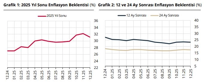 TÜİK, Aralık 2025 dönemine ilişkin Piyasa Katılımcıları Anketi verilerini açıkladı. Buna göre; katılımcıların cari yıl sonu tüketici enflasyonu beklentisi bir önceki anket döneminde yüzde 32,20 iken, bu anket döneminde yüzde 31,17 oldu. 12 ay sonrası enflasyon beklentisi bir önceki anket döneminde yüzde 23,49 iken, bu anket döneminde yüzde 23,35 oldu. 24 ay sonrası için beklenti de bir önceki anket döneminde yüzde 17,69 iken, bu anket döneminde yüzde 17,45 olarak gerçekleşti.