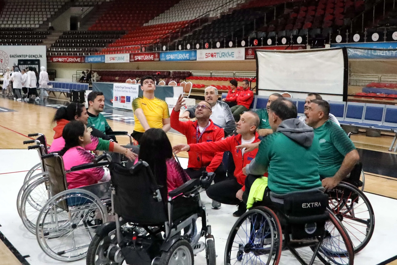 Ahmet ATMACA-Nuray UZATMAZ/GAZİANTEP, (DHA)- KAHRAMANMARAŞ merkezli 6 Şubat 2023 depremlerinde uzuvlarını kaybedenlerin de aralarında olduğu 33 kişi, tekerlekli sandalyede tenis eğitimleri alıp, hayata yeniden tutundu. Gaziantep Büyükşehir Belediyesi Engelli, Yaşlı ve Sağlık Hizmetleri Daire Başkanı Yusuf Çelebi, sporla tüm engellerin aşılacağını ifade ederek, “Ampute olan arkadaşlarımızı önce ayağa kaldırdık sonra hayata kattık. Sporla engelleri aşıyoruz” dedi.