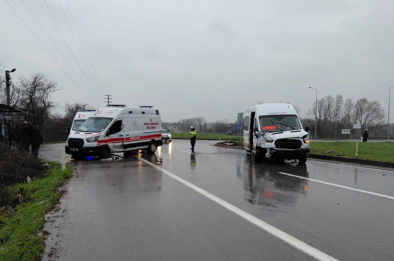 Serhat YILMAZ/ AKYAZI(Sakarya), (DHA)- SAKARYA’nın Akyazı ilçesinde, ambulans ile servis minibüsünün çarpıştığı kazada 3’ü sağlık personeli olmak üzere 10 kişi yaralandı.