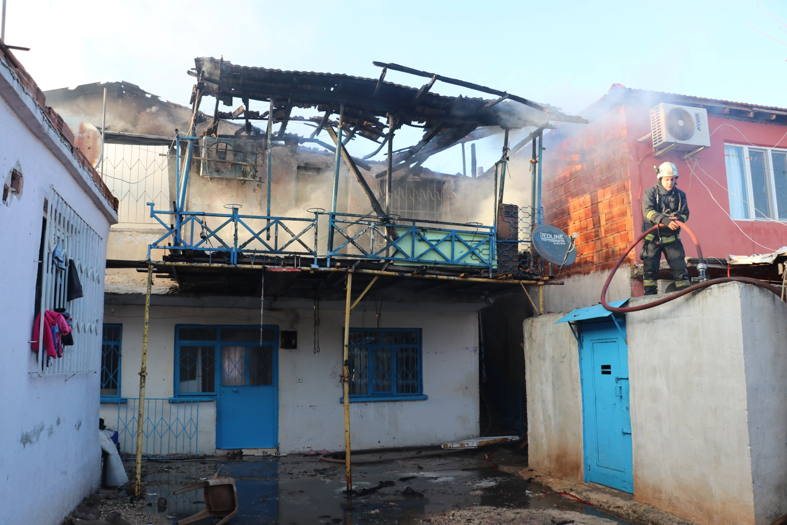 Kısa sürede olay yerine ulaşan itfaiye ekipleri, yangının çevredeki diğer evlere sıçramasını önledi. Ekipler, yoğun duman ve alevlere rağmen yangını kontrol altına alarak söndürdü. Yangın nedeniyle ev kullanılamaz hale geldi. Polis ekipleri yangınla ilgili inceleme başlattı. (DHA)