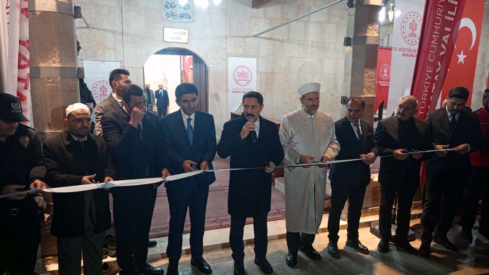 Açılış nedeniyle açıklama yapan Hatay Valisi Mustafa Masatlı, “Asırların felaketi kültürel mirasımızda da önemli tahribatlara yol açtı. Bizlerin mülkiyetinde olan yani devletin mülkiyetinde olan tüm tarihi eserlerde, hasar almış tüm tarihî eserlerde biz gerekli çalışmalara başladık. Bugün de Yenişehir Camii'ndeyiz. Yenişehir Camii 1899 yılında yerel ustalar tarafından inşa edilmiş. Devamında da tam karşısına Kur'an kursu inşa edilmiş. Kısacası küçük bir külliyeyi andıran tarihi yapılarımızdı. Maalesef Asırların Felaketinde burası ağır hasar aldı. Ağır hasar almakla beraber Vakıflar Genel Müdürlüğümüz süratle burada da çalışmaya başladı. Vakıflar Genel Müdürlüğümüzün 84 eserinde Asırların felaketinden kaynaklı hasar oluşmuştu. Bunlardan 17'si bugün hizmete alıyoruz. Yani 16'sıydı, 17'si olan Yenişehir camimizde hem Kur'an kursuyla birlikte gerekli çalışmalar yapıldı. Zemin güçlendirilmesi yapıldı. Onun dışında duvarlar, çatı dahil, yani buradaki iki eserimizde de meydana gelen tüm hasarlar giderildi. Ve bu mübarek gecede Berat Kandilinde de hizmete almış olduk. Tabii bu bizim için mutluluk verici bir durum. Çünkü biz almış olduğumuz bu eserlerin bu mirası bir sonraki kuşağa sağlam bir şekilde, güvenli bir şekilde teslim etmemiz gerekir. Bugün de Berat Gecesi, yani af ve mağfiret dilenen gece. İnşallah. Bu cami bizlerin de günahlarının af olmasına vesile olur. Ben tabii bütün bu çalışmalarda liderlik eden, başkanlık eden, başta Sayın Cumhurbaşkanımız olmak üzere bakanlarımıza, Vakıflar Genel Müdürlüğümüze ve burada emeği geçen vakıflar bölge müdürlüğümüze dahil tüm çalışanlara, emek veren, değer katan herkese teşekkür ediyorum. Yenişehir camimiz, başta Reyhanlı olmak üzere, ilimize ve ülkemize hayırlı olsun” dedi. Caminin ibadete açılmasından sonra katılımcılara salep ikramında bulunuldu.