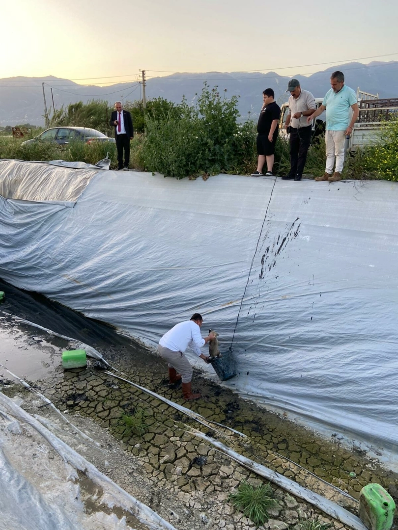 Bahattin ALBAYRAK/ SULTANHİSAR(Aydın), (DHA)- AYDIN’ın Sultanhisar ilçesinde, çilek sulama havuzuna düşen 5 yavru köpek kurtarıldı.