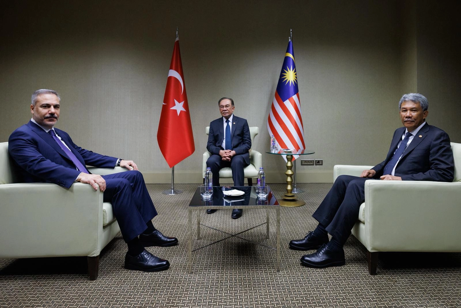 ANKARA, (DHA)- DIŞİŞLERİ Bakanı Hakan Fidan, Malezya Başbakanı Enver İbrahim ve Malezya Dışişleri Bakanı Mohamad bin Hasan ile Ankara’da bir araya geldi.