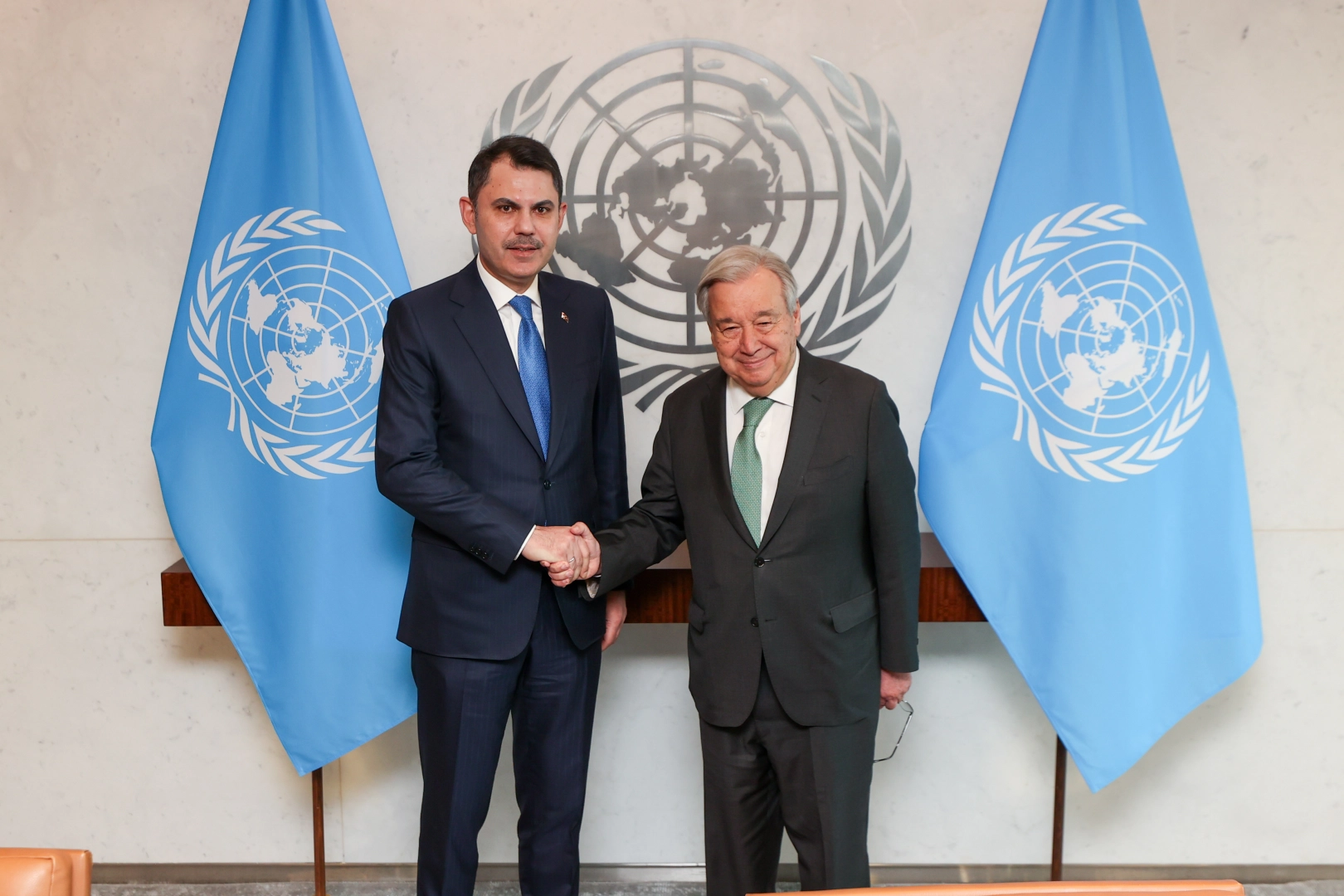 Bakan Kurum, ikinci görüşmesini BM Genel Sekreteri Antonio Guterres ile gerçekleştirdi. BM binasındaki görüşmede COP31 sürecini ele aldıklarını belirten Bakan Kurum, “Görüşmemizde, küresel iklim krizi, enerji güvenliği ve savunmasız toplulukların korunması gibi kritik konuların yanı sıra Sıfır Atık ve döngüsel ekonomi yaklaşımları, finansman, teknoloji transferi ve kapasite geliştirme konularına da değindik. Çok taraflılığı güçlendirmek ve iklim eyleminin uygulanmasını hızlandırmak için COP31’i güven ve diyalog, uzlaşma ve eylemin merkezi bir platformu olarak görüyoruz; Antalya’daki liderler zirvesi ile tüm dünyaya ortak sorumluluk mesajı göndermeye hazırlanıyoruz. Bu verimli toplantı ve değerli iş birliğimiz için Genel Sekreter’e teşekkür ediyorum” paylaşımını yaptı.