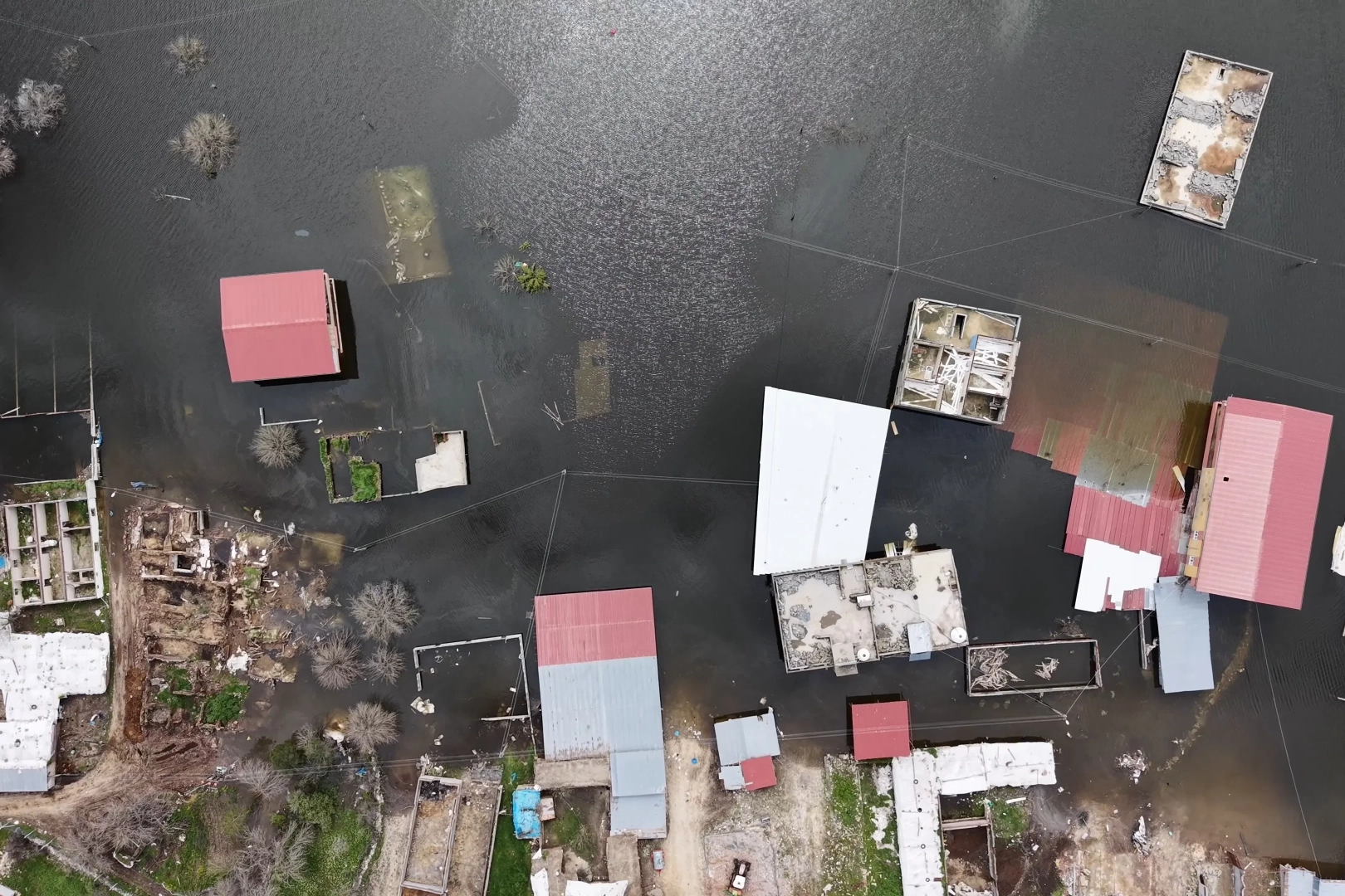 Gıyasettin TETİK-Hüseyin İÇLİ/KOCAKÖY (Diyarbakır), (DHA)- DİYARBAKIR'ın Kocaköy ilçesinde etkili olan yağışlar sonrası su seviyesi yükselen Ambar Barajı’nın kapaklarının açılmasıyla su, kırsal Şerifoğulları Mahallesi'ne ulaştı. Daha önce boşaltılan ve su altında kalan 10 ev, dronla görüntülendi.