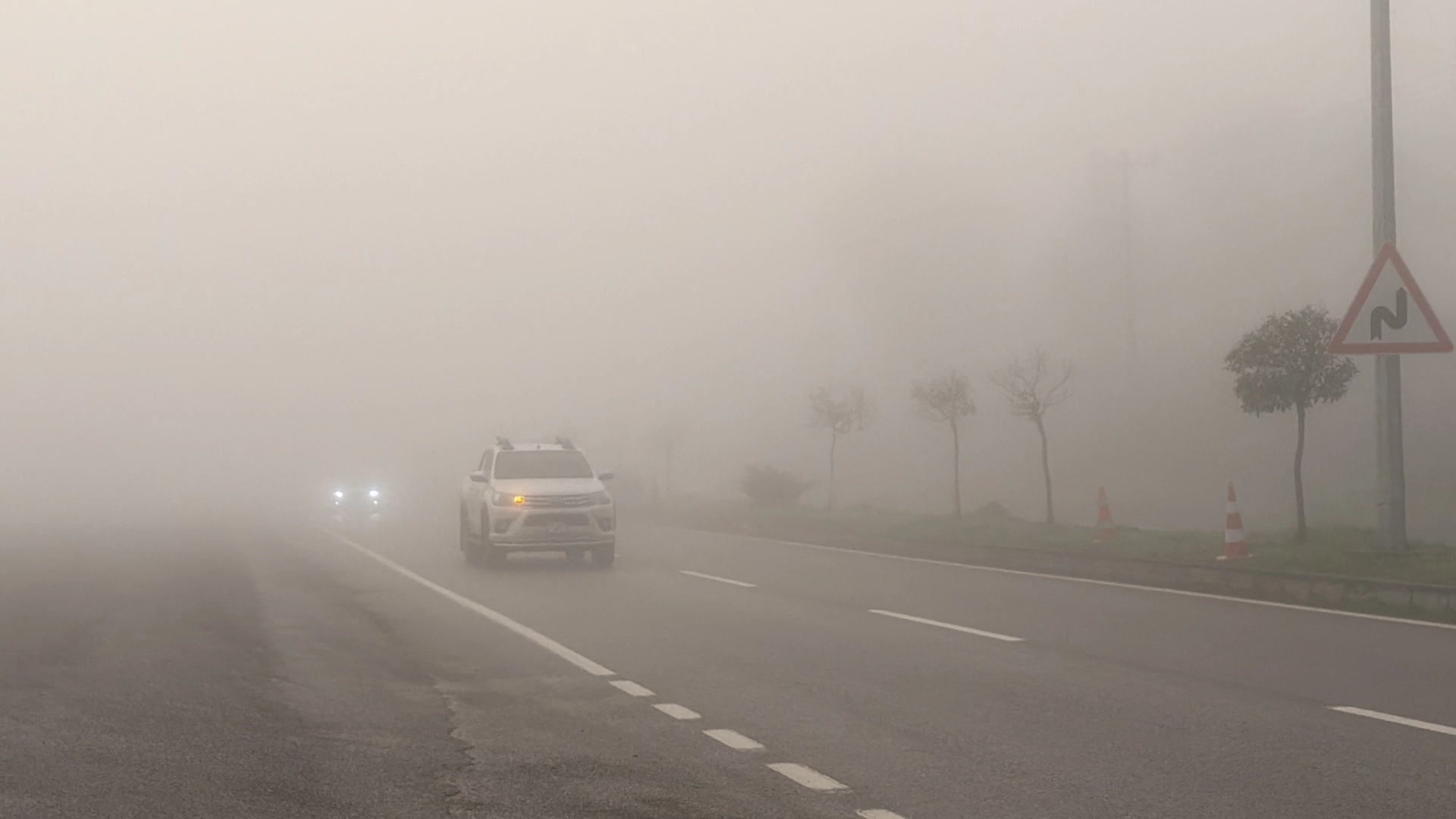 Ayhan ACAR/BARTIN, (DHA)- BARTIN'da sabah saatlerinde etkili olan sis nedeniyle görüş mesafesi yaklaşık 10 metreye düştü, trafikte sürücüler, araçlarıyla kontrollü ilerledi.