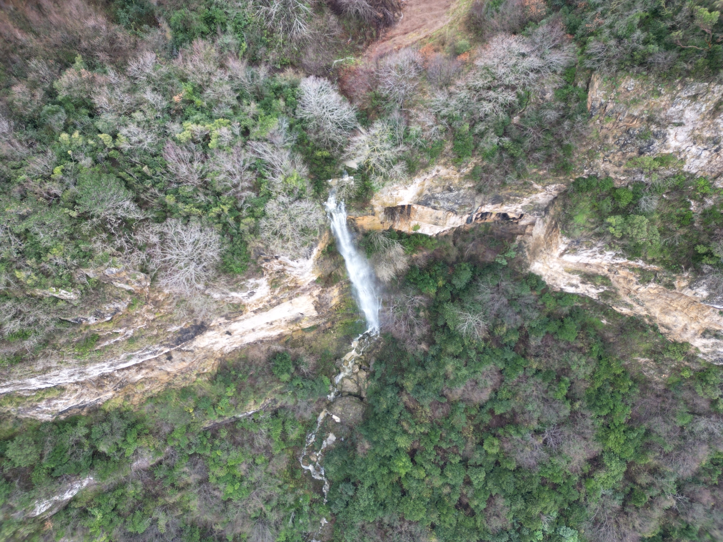 İnkumu tatil beldesinde yoğun yağış sonrasında Güzelcehisar köyü civarında, yaklaşık 100 metre yükseklikten düşen su, şelale görüntüsü oluşturdu. İnkumu'nda zaman zaman yağışların ardından ortaya çıkan şelale, dronla görüntülendi. (DHA)