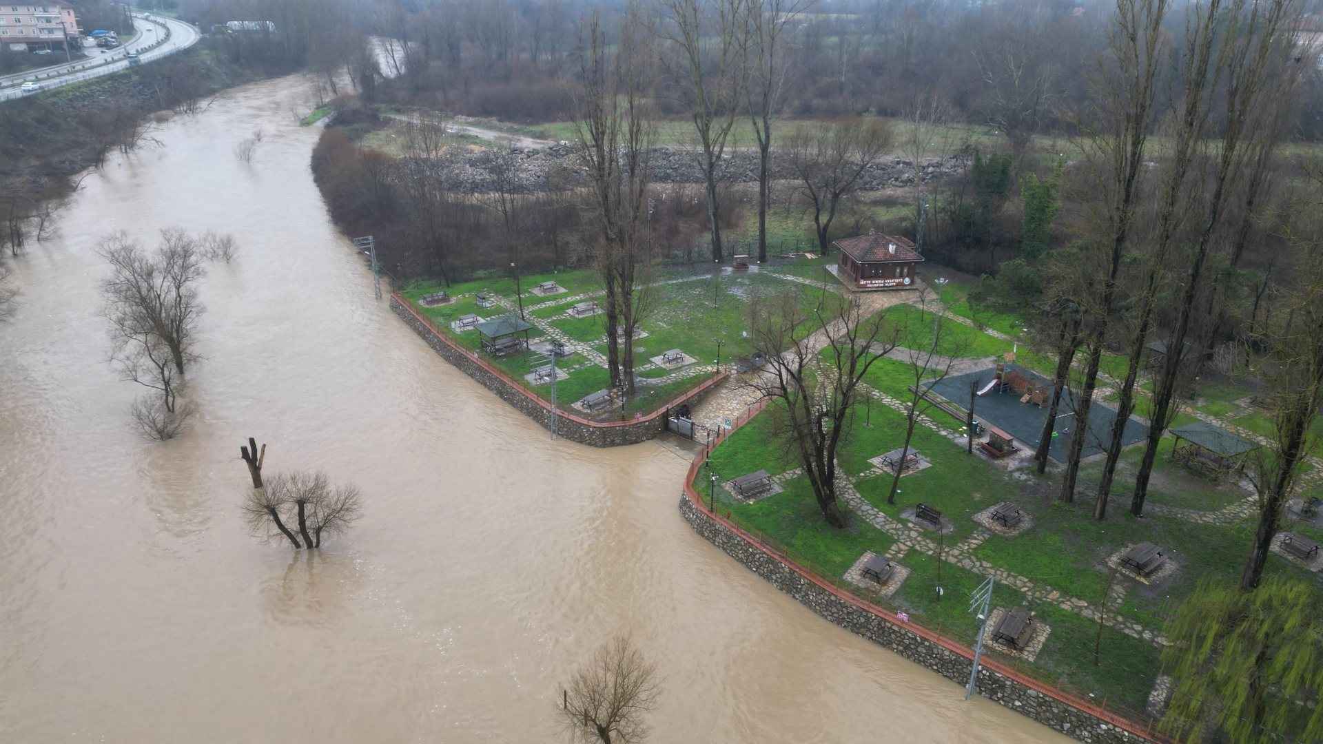 Öte yandan ırmağın yükselmesi ile Kabagöz, Akçalı, Tabanözü, Epçiler, Hasanlar, Alibaş, Fırınlı ve Sipahiler köylerinin Bartın ile bağlantısını sağlayan köprü trafiğe kapatılırken, ulaşım alternatif yollardan yapılıyor. Bartın Irmağı'ndaki su seviyesi artışı, suyun taştığı piknik alanları ve yürüyüş yolları dronla görüntülendi. (DHA)