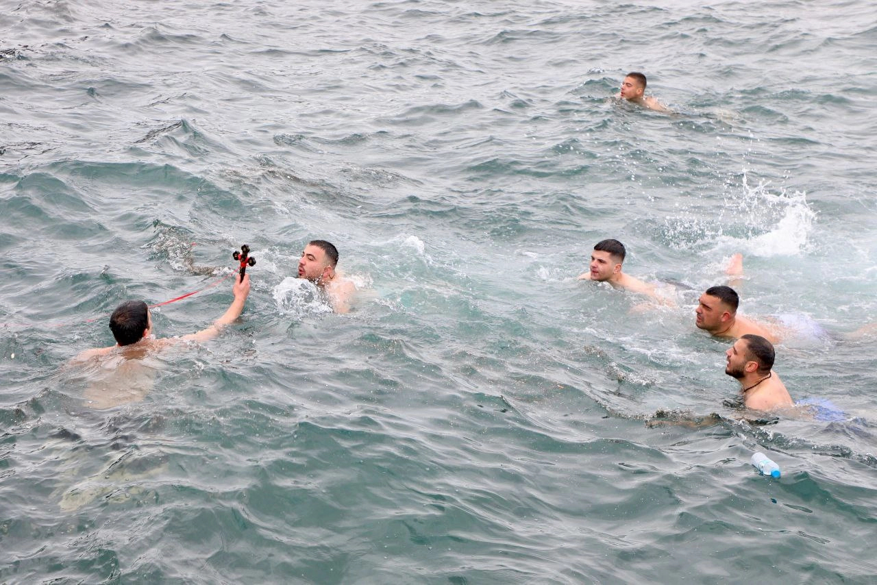 Özgül ATABEY/MUDANYA (Bursa), (DHA)- BURSA'nın Mudanya ilçesinde, Hazreti İsa'nın doğumu ve vaftiz edilişinin dönümü kapsamında ayin ve denizden haç çıkarma töreni yapıldı.
