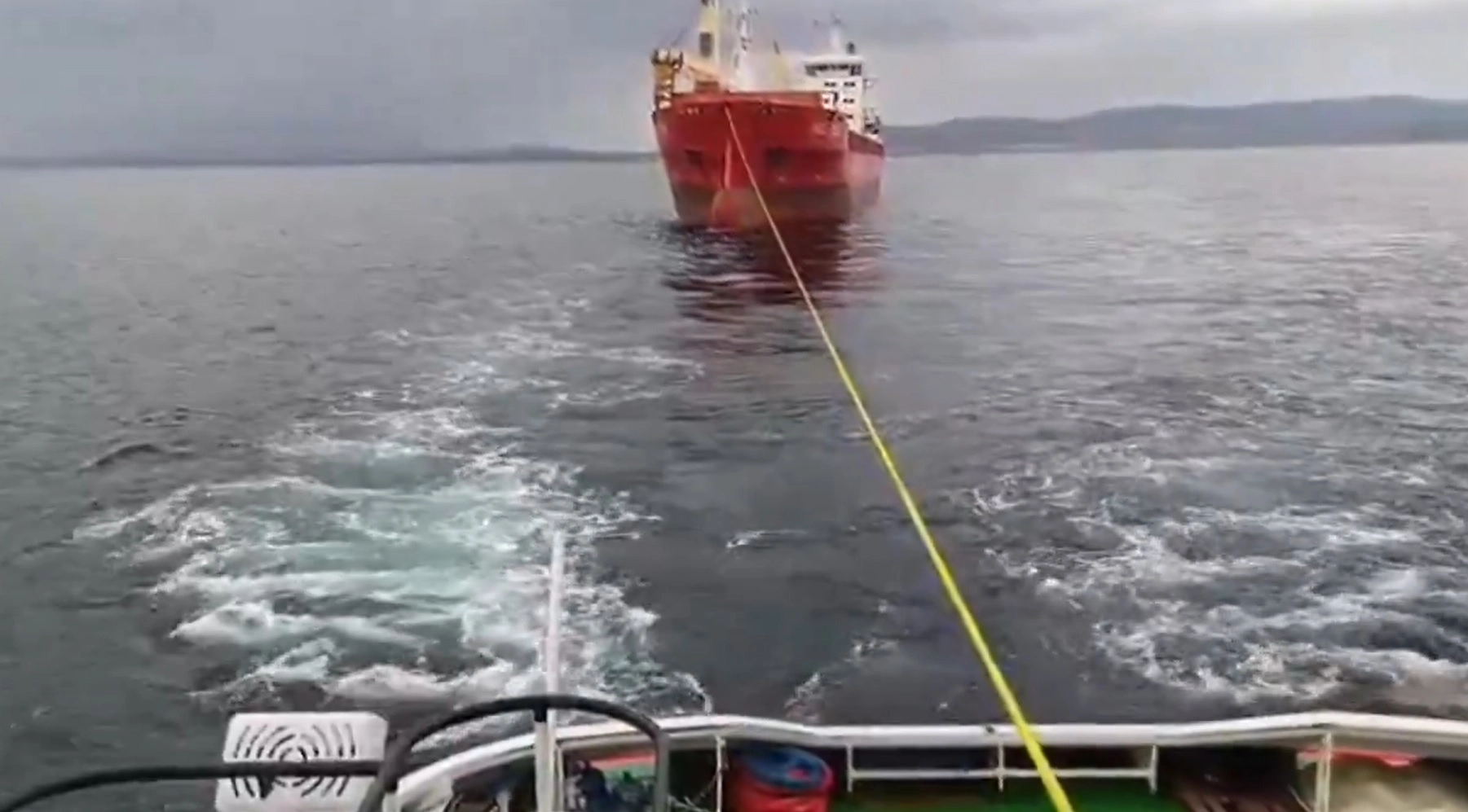 Nazif Cemhan ŞEN/ ÇANAKKALE, (DHA)- ÇANAKKALE Boğazı'nda makine arızası yapan 137 metre uzunluğunda Marshall Adaları bayraklı kuru yük gemisi, römorkör tarafından yedeklenerek Karabiga Demir Sahası’na demirletildi.