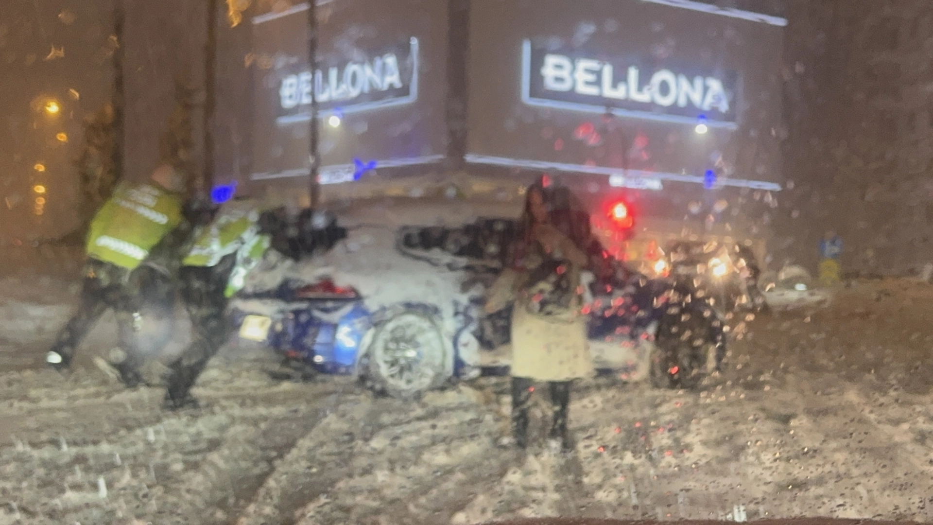 Diyarbakır'da etkili olan yoğun kar yağışı nedeniyle trafiğin durma noktasına gelen bölgelerde görev yapan trafik ekipleri, sürücüleri yönlendirirken, ilerlemekte güçlük çeken araçları da itti. O anlar yoldan geçen sürücülerin cep telefonu kamerasıyla görüntülendi.