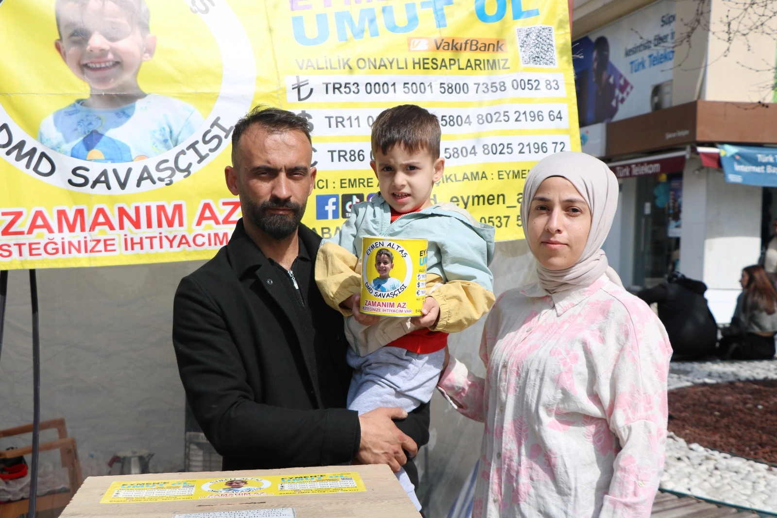 Baba Emre Altaş (35) ise "Süreç gerçekten çok zor. Sabahları 2 tane standım var. Bir pazarı açıyorum, bir de burayı açıyorum. Geri kalan zamanda kumbara ile ilgileniyorum. O işler bittikten sonra da işe gidiyorum. Beyaz eşya tamiri yapıyorum. Akşama kadar çalışıyorum. Akşam tekrar stantları toplama serüvenimiz var. Haftanın 2-3 günü canlı yayın açıyoruz. Bu süreçte çok yoruluyoruz. Bu süreci Allah kimsenin başına vermesin. Çünkü tedavisi var ama maalesef maliyeti çok yüksek olduğu için hemen olmuyor. Çok kişinin az parasıyla inşallah oğlumu sağlığına kavuşturacağız ve Dubai’ye götüreceğiz. 460 bin kişi 250 lira verdiği takdirde oğlumun kampanyası bugün bitiyor. Bütün sandıklarımız valilik kontrolünde açılıyor. İnananlarımızdan duyarlı olmasını istiyorum. Standın önünden geçerken başlarını kaldırıp, baksalar çok iyi olur. Bu kampanyalar, 3-5 lirayla biten kampanyalar. Eğer oğlum ilacını, tedavisini alamazsa maalesef tekerlekli sandalye kullanmaya başlayacak. Daha sonrasında istemediğimiz sonuç vefat edecek. İnşallah bu olayı yaşamayız. Cebinizdeki bozuk paralarla oğlum sağlığına kavuşabilir" diye konuştu. (DHA)