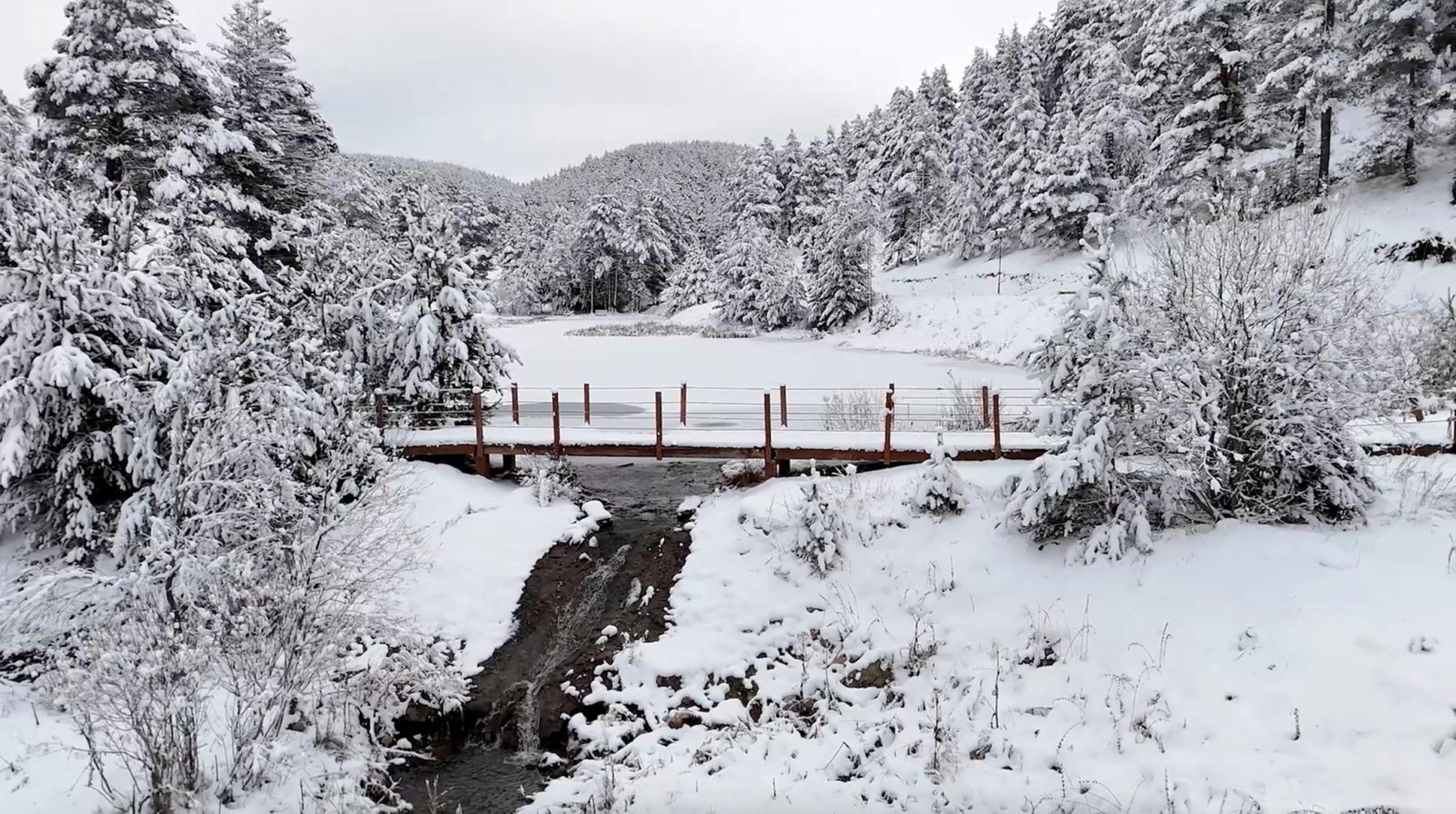 Erzincan kent merkezine 70 kilometre uzaklıktaki Refahiye ilçesine bağlı Dumanlı Tabiat Parkı kış aylarında kar yağışı sonrası eşsiz bir güzelliğe kavuştu. Deniz seviyesinden yüksekliği 2 bin metre olan ve yeşilin birçok tonunu barındıran tabiat parkı yaz aylarında yerli ve yabancı birçok turistin akınına uğrarken, kışın da kar yağışı nedeniyle beyaz ve yeşil bürünerek doyumsuz bir görüntü ortaya çıktı. Kar kalınlığının 1 metreyi aştığı tabiat parkı dron kamerası ile görüntülendi. Etrafı çam ormanlarla çevrili Dumanlı Tabiat Parkı, yaz aylarında olduğu gibi kışın da doğal güzelliğini koruyor. (DHA)