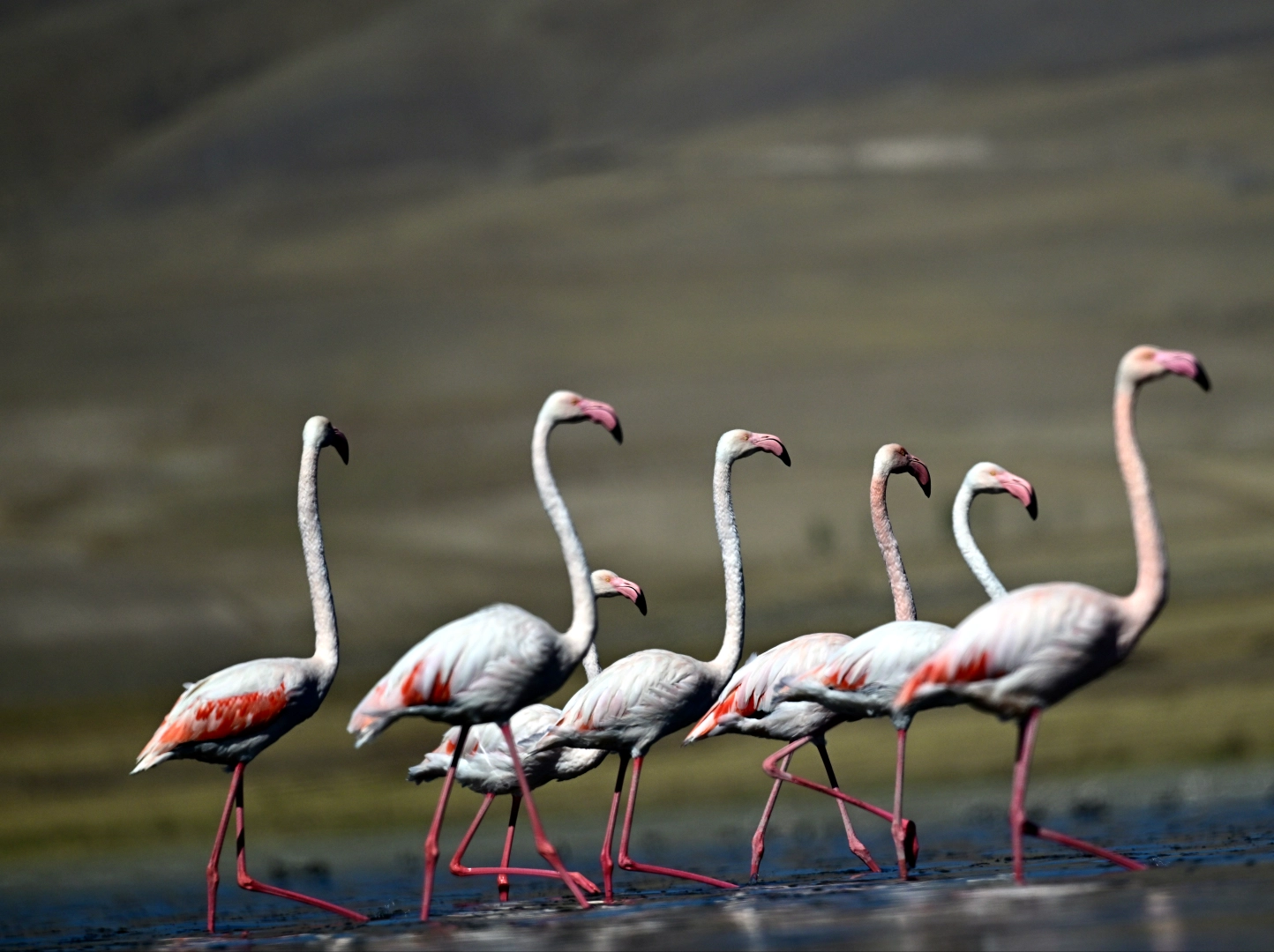 Behçet DALMAZ-Orhan AŞAN/VAN, (DHA)-ÖZELLİKLE nisan ayında Van Gölü Havzası'na gelip, buradaki sulak alanlarda hem yavrularını büyütüp hem de konaklayan flamingolar, İran'daki Urumiye Gölü kuruyunca kışın da Van'ı terk etmedi. Van Yüzüncü Yıl Üniversitesi (YYÜ) Yaban Hayvanları Koruma ve Rehabilitasyon Merkezi Müdürü Prof. Dr. Lokman Aslan, "Geçen yıl kış mevsiminde sayıları 100'den fazla olan flamingo, Van Gölü Havzası'ndan hiç ayrılmadı. Bu da Urumiye Gölü'nün kurumasından kaynaklı oluyor. Oralarda yaşam alanları daralınca artık Van Gölü Havzası'na daha yoğun olarak geliyorlar" dedi.