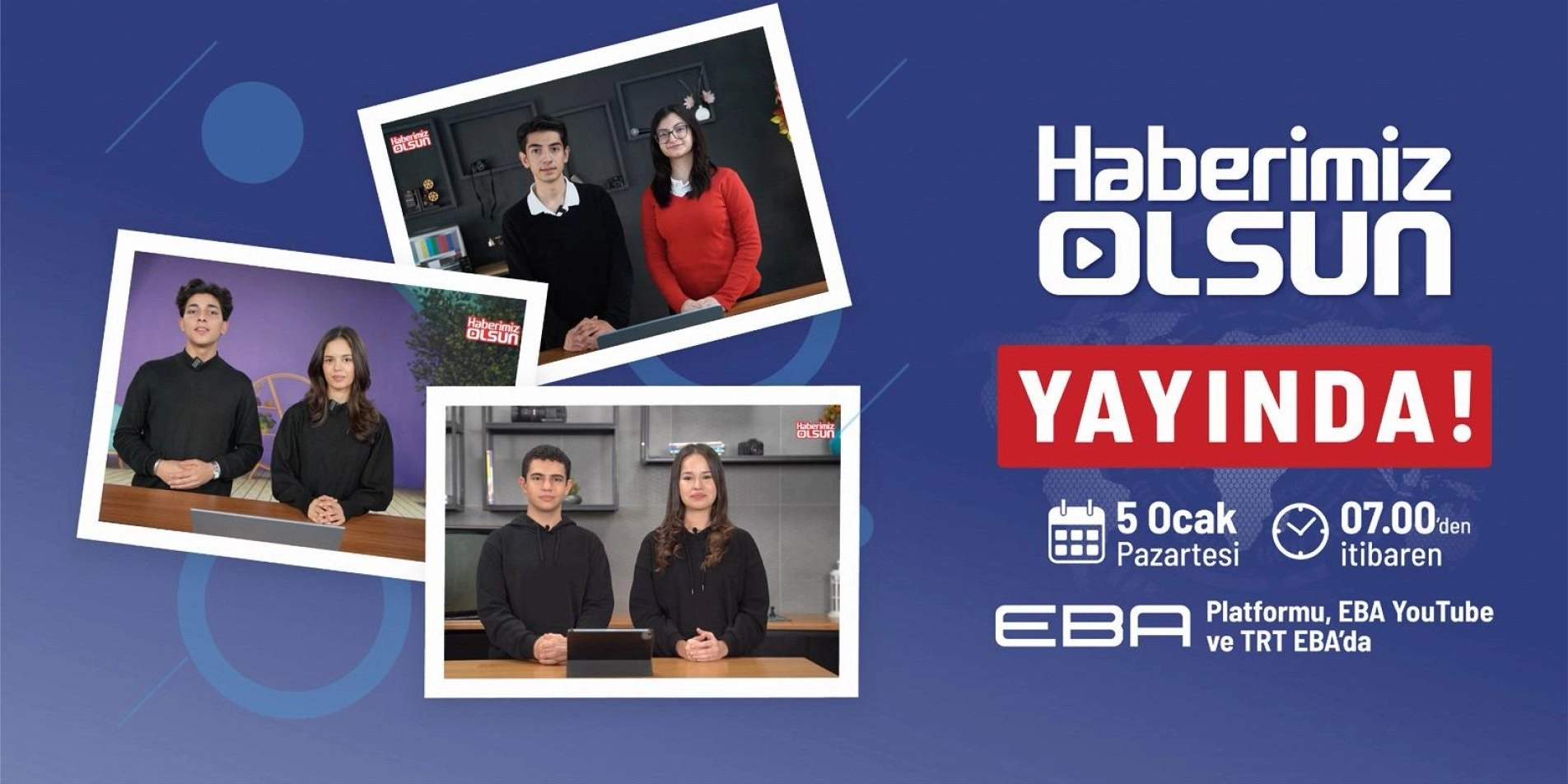 Türkiye Yüzyılı Maarif Modeli vizyonu doğrultusunda hayata geçirilen ‘Haberimiz Olsun’ projesi kapsamında, öğrencilerin aktif katılımıyla hazırlanan haber bültenleri, 5 Ocak itibarıyla EBA, EBA YouTube ve TRT EBA kanalı üzerinden yayınlanmaya başladı. Projenin prodüksiyon ve yayın süreci, medya altyapısı güçlü eğitim kurumlarıyla iş birliği içinde yürütülüyor. Pilot okul olarak seçilen İstanbul Demirören Medya ve Teknoloji Mesleki Teknik Anadolu Lisesi, Ankara Çankaya Türk Telekom Mesleki Teknik Anadolu Lisesi, Ankara Batıkent Şevket Evliyagil Mesleki Teknik Anadolu Lisesi ile Ankara Gölbaşı Cemil Yıldırım Bilim ve Sanat Merkezi (BİLSEM), proje kapsamında yürütülen çalışmalarda yer alıyor.
