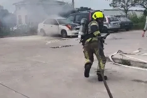 Karacabey Devlet Hastanesi’ne yakınını getiren Turgay Ç., 77 AAK 391 plakalı otomobilini saat 11.00 sıralarında otoparka park etti. Bir süre sonra aracın motor kısmından dumanlar yükselmeye başladı, ardından da alev aldı. Çevredekilerin ihbarı üzerine adrese itfaiye, polis ve sağlık ekipleri sevk edildi. Polis ekipleri yangın tüpüyle ilk müdahaleyi yaparken, kısa sürede gelen itfaiye ekipleri alevleri kontrol altına alarak söndürdü.