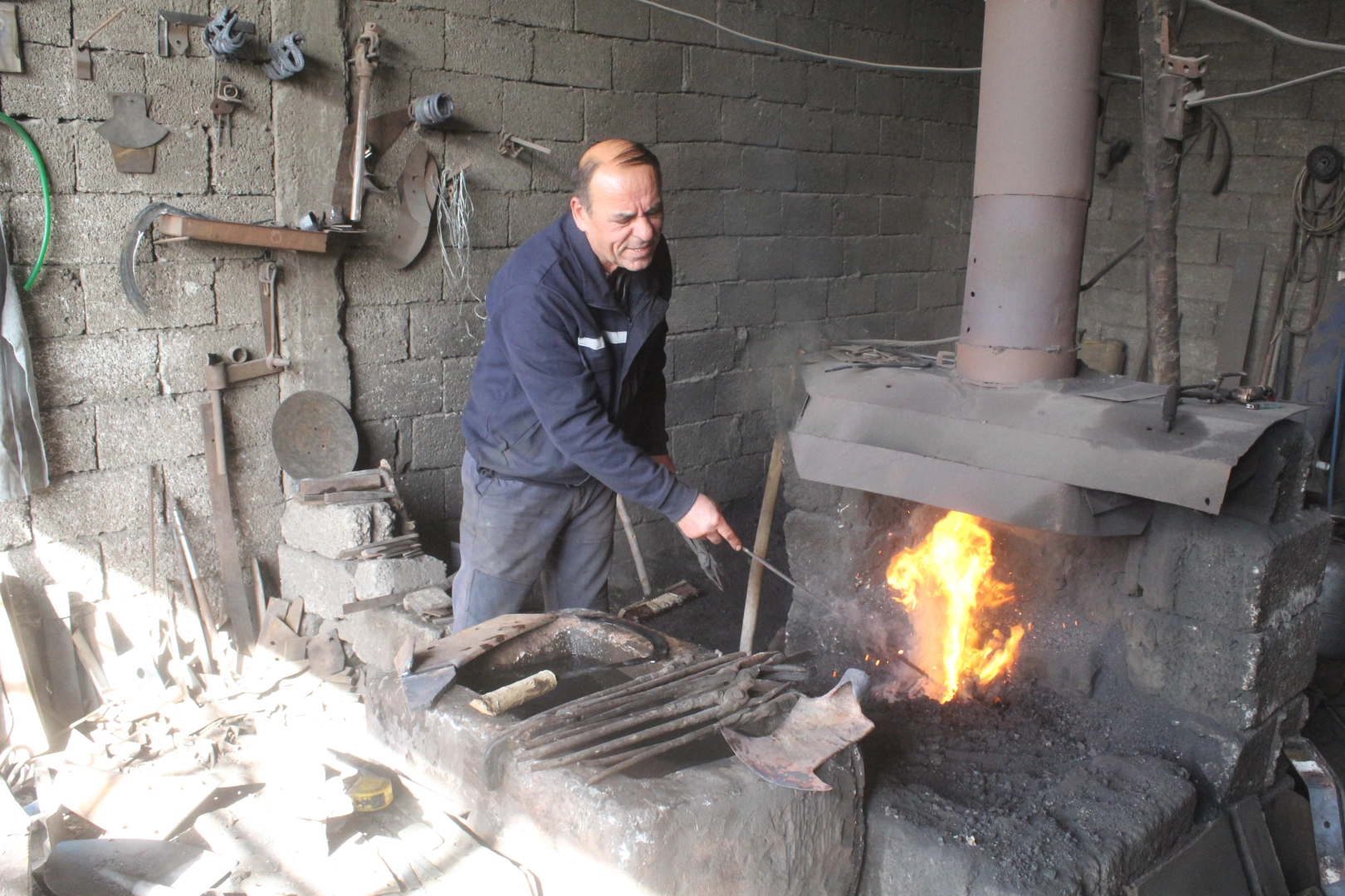 Metin DEĞİRMENCİ/YEŞİLHİSAR (Kayseri), (DHA)- KAYSERİ’nin Yeşilhisar ilçesinde Ali Merdin (65), babasından kendisine miras kalan demircilik mesleğini 52 yıldır sürdürüyor. Mesleğin üç kuşak temsilcisi ve ilçenin tek demir ustası olan Merdin, “Şimdiki gençlerin bu işe hiç hevesi yok. Her şeyi hazır bekliyorlar. Bu sanatı öğrenmek isteyen kimse kalmadı. Eskiden anne babalar çocuklarını bir ustanın yanına verir, meslek öğrensin isterdi. Artık o da bitti. Ben mesleğimin son temsilcisiyim” dedi.