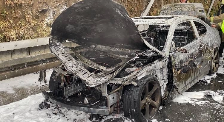 Baran AKKAYA/İSTANBUL,(DHA)-FATİH’te seyir halindeki otomobilde çıkan yangın itfaiye ekiplerince söndürüldü. Demir yığınına dönen aracın alev alev yandığı anlar diğer sürücüler tarafından cep telefonu kamerasıyla kaydedildi.
