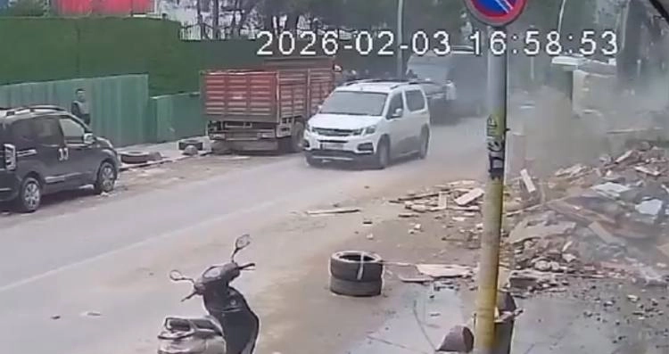 Baran AKKAYA- Emin YEŞİL / İSTANBUL, (DHA)- SULTANGAZİ'de kentsel dönüşüm kapsamında yıkımı devam eden binadan kopan beton parça, caddeye düştü. Parça, o sırada yoldan geçen seyir halindeki hafif ticari araca çarptı. O anlar güvenlik kamerasına yansıdı.