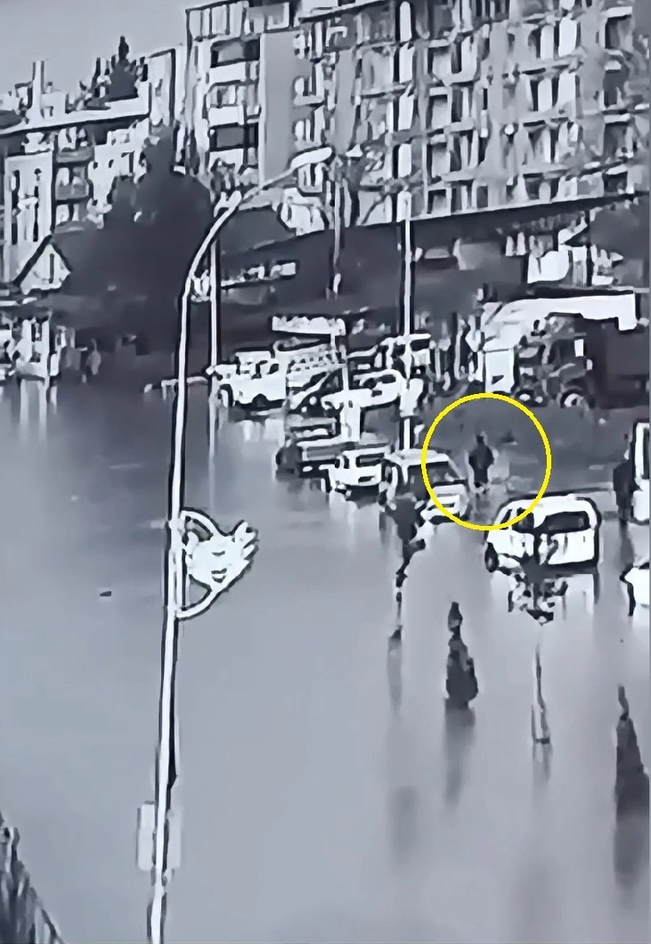 Olay, Atatürk Caddesi’nde meydana geldi. Kaldırımda yürüyen kişi, sağanağın ardından su dolan çukura düştü. Beline kadar suya gömülen kişi, daha sonra kendi imkanlarıyla çukurdan çıktı. O anlar, çevredeki güvenlik kamerasına yansıdı. (DHA)