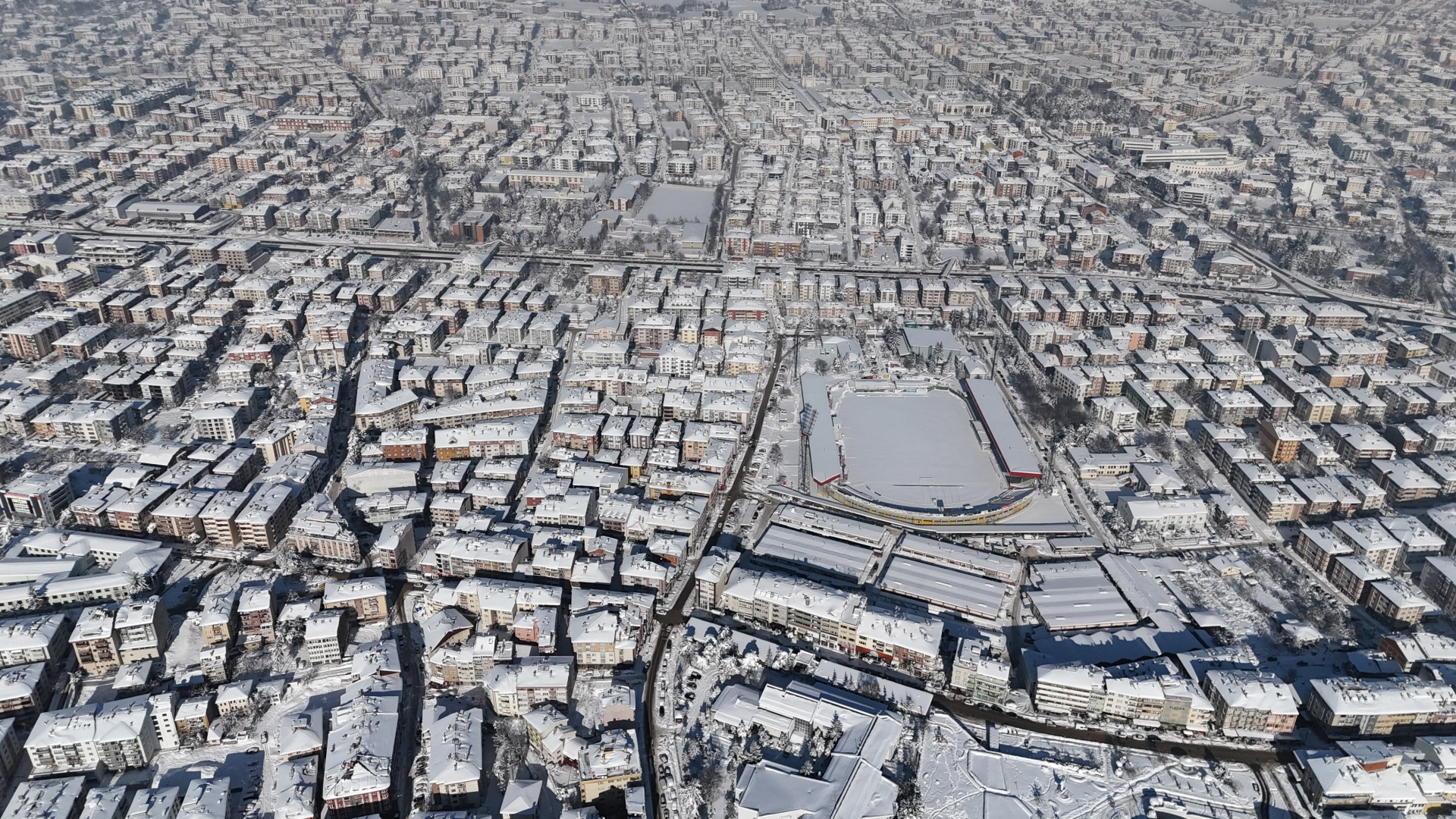 Bolu'da 6 gün boyunca kar yağışı etkili oldu. Yeşil alanlarda kar kalınlığı merkezde 1 metreye, yüksek kesimlerde 2,5 metreye yaklaştı. Dün akşam saatlerinde etkisini yitiren kar yağışı, yerini soğuğa bıraktı. Hava sıcaklığı, gece saatlerinde Bolu'nun Dörtdivan ilçesinde sıfırın altında 23,8 santigrat derece olarak ölçüldü. Merkezdeki en düşük sıcaklık ise gece saatlerinde sıfırın altında 18 derece olarak ölçüldü. Karayolları ve belediye ekipleri, kar küremenin ardından buzlanma riskine karşı tuzlama çalışması yapıyor. Karla kaplanan kent, dronla görüntülendi. (DHA)