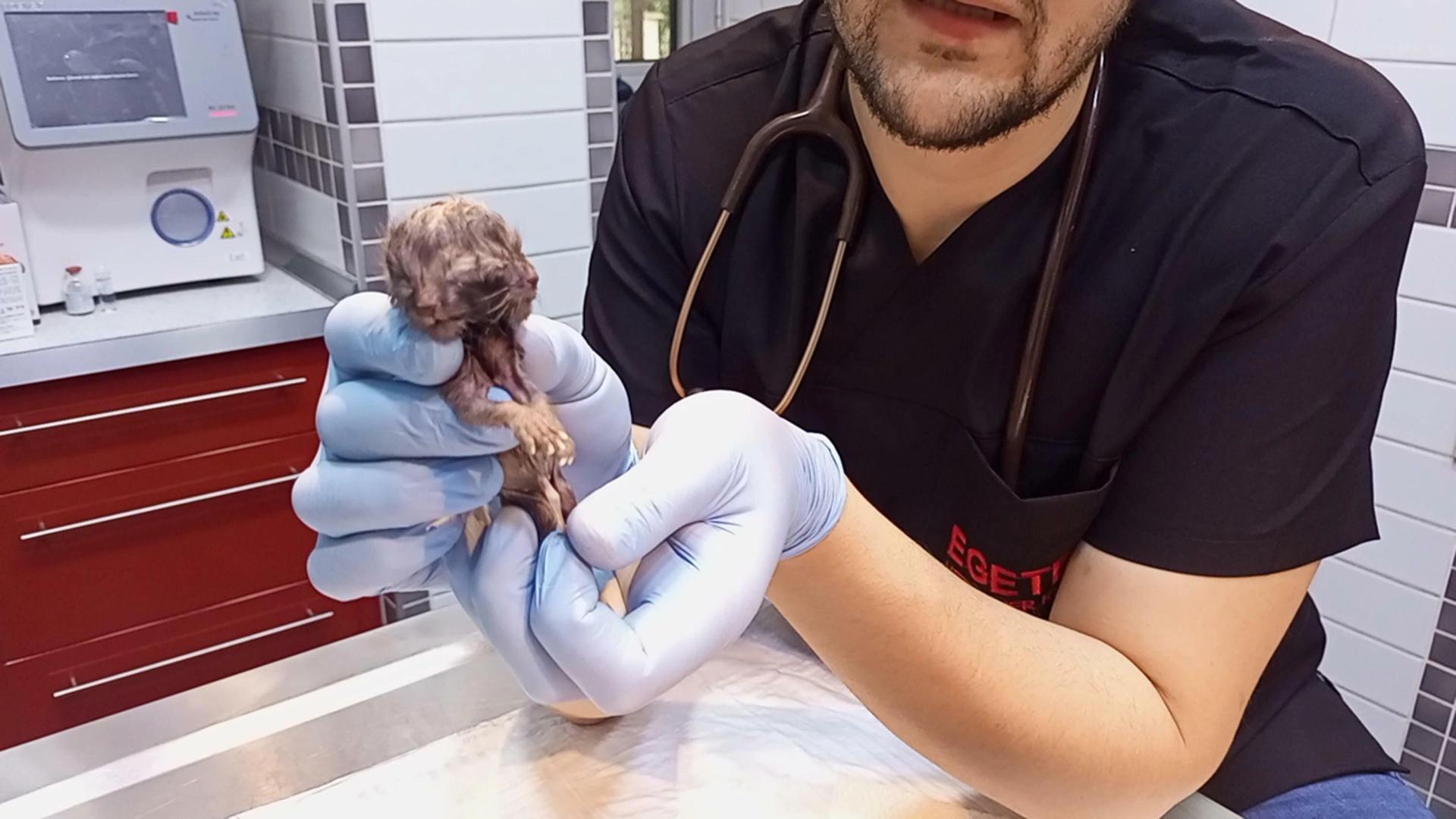 Dumlupınar Mahallesi'nde yaşayan Mustafa Öz tarafından kliniğe getirilen kedinin yapılan kontroller sonucu doğum kanalında sıkışmış ölü bir fetüsün olduğu ve bu nedenle doğumu gerçekleştiremediği tespit edildi. Hayati tehlikesi bulunan kediye cerrahi müdahale yapıldı. Yapılan sezaryenla kedinin doğumu gerçekleştirildi ve 3 yavrusu sağlıklı şekilde alındı. Çift başlı olduğu belirlenen diğer yavru ise ölü doğdu. Ameliyat sırasında anne kediye kısırlaştırma işlemi de uygulandı.