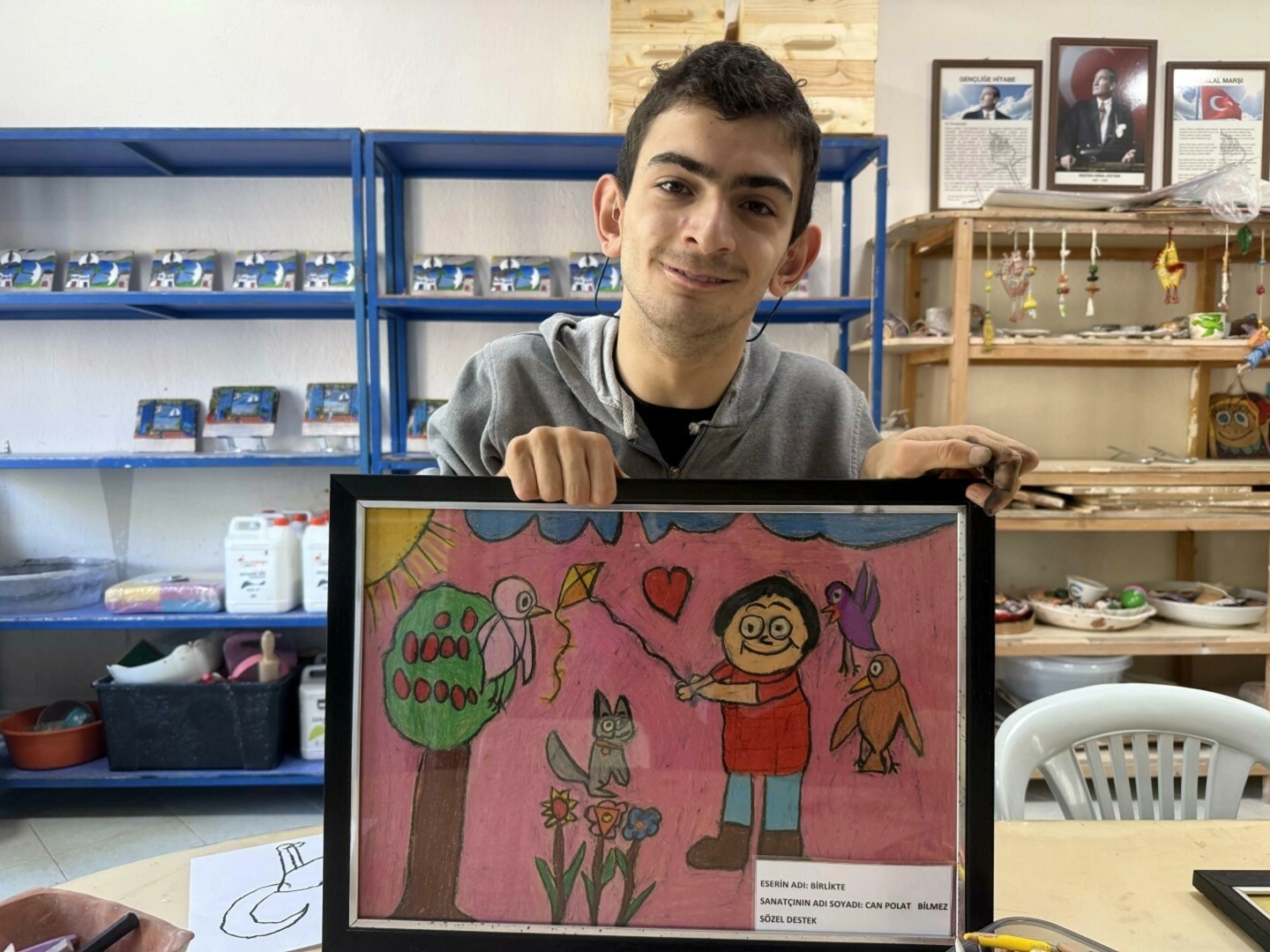 Bodrum ilçesinde konuşma güçlüğü bulunan kas hastası Can Polat Bilmez'in resim yeteneği, eğitim gördüğü Yahşi Özel Eğitim Uygulama Okulu'nun 3'üncü kademesinde keşfedildi. Küçük yaşta geçirdiği sarılık sonrası yapılan kan değişimi sırasında beynindeki damarın oksijensiz kalması nedeniyle kas hastalığına yakalanan Bilmez, 9 yıldır devam ettiği okulunda hem sanatla hem de sosyal etkinliklerle hayata tutunuyor. Can Polat Bilmez'in okulda resim çalışmalarına katılarak yaptığı eserler, öğretmenlerinin ve arkadaşlarının beğenisini topluyor.