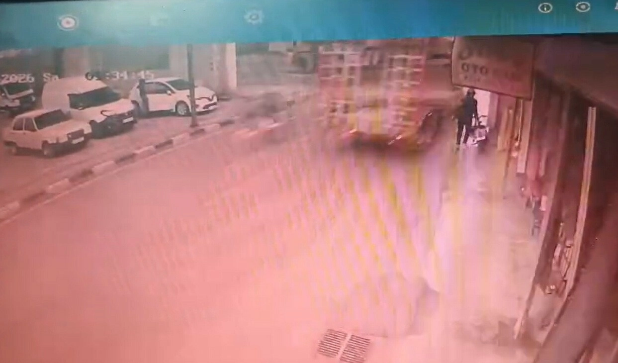 Olayla ilgili soruşturma başlatılırken, kaza anı çevredeki bir iş yerinin güvenlik kamerasına yansıdı.(DHA)