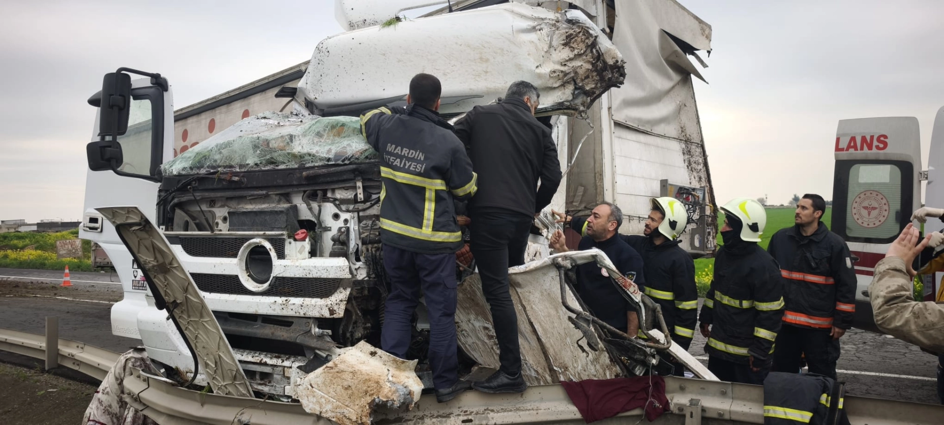 Mardin'de bariyerlere çarpan TIR'ın şoförü ağır yaralandı