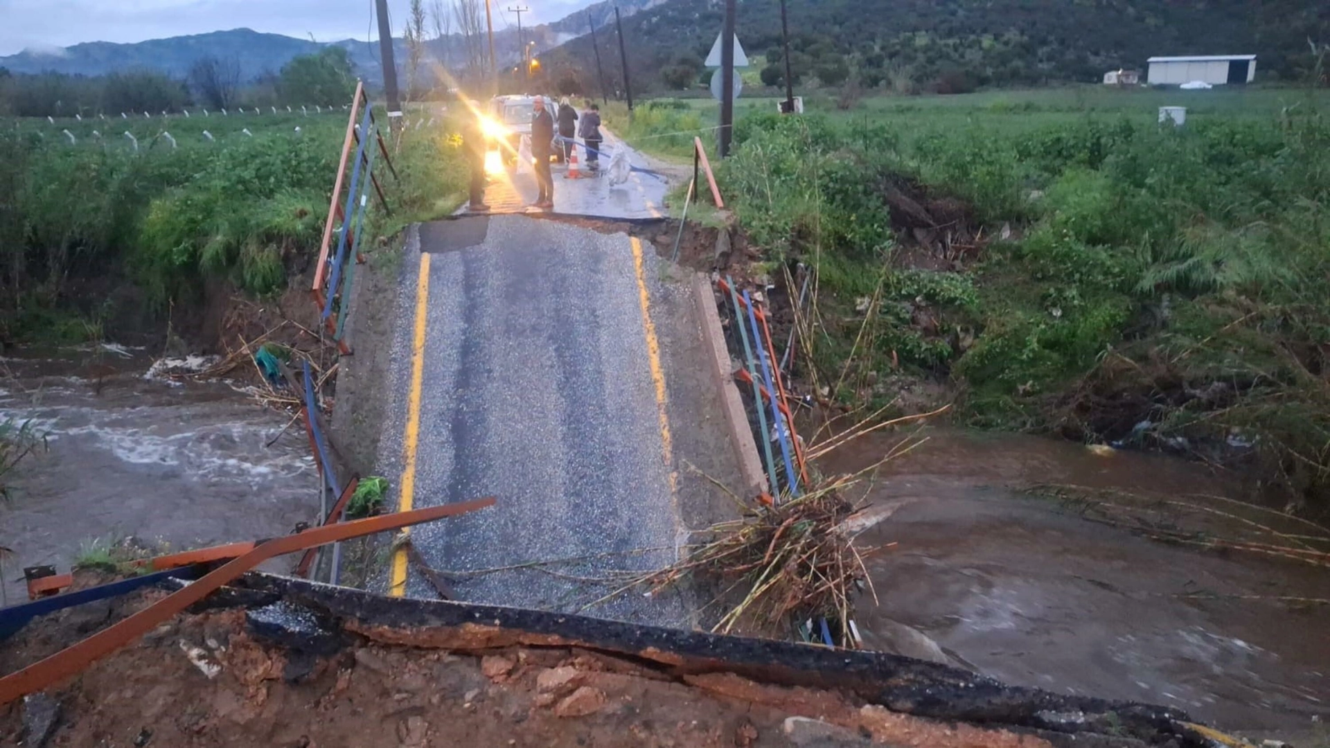 Milas’ta dün etkili olan sağanak nedeniyle derelerin su seviyesi yükseldi. Bafa-Gölyaka mahallerini birbirine bağlayan köprü çöktü. Bölgeye Muğla Büyükşehir Belediyesine bağlı ekipler sevk edildi. Ekipler tarafından köprü ve çevresi güvenlik şeridiyle kapatıldı. İş makineleri ile bölgedeki hafriyatlar kaldırılırken, ulaşımın alternatif yollardan sağlanacağı belirtildi. (DHA)