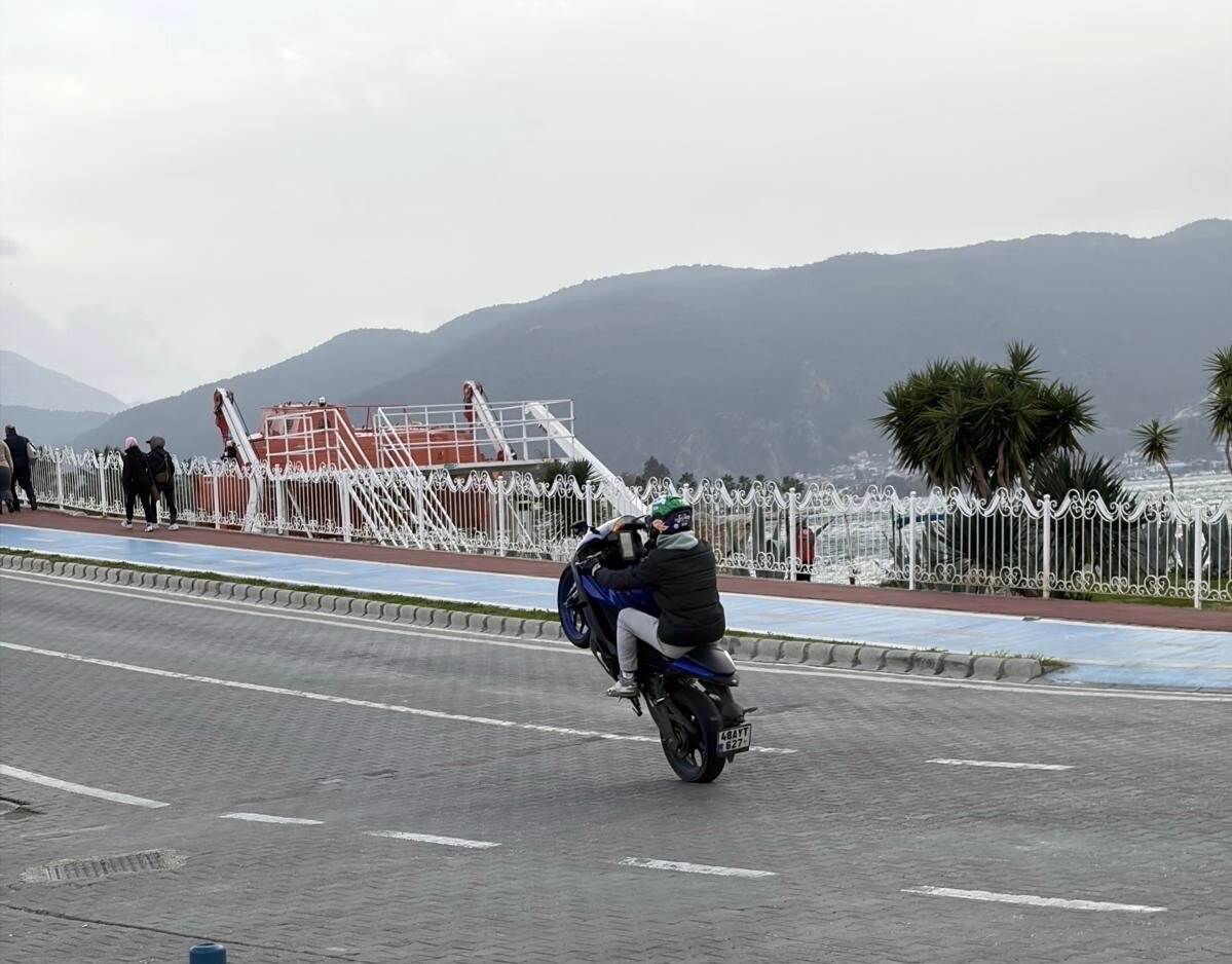 Fethiye Cahit Gündüz Caddesi üzerinde dün denetim yapan polis ekipleri, motosikletinin önünü kaldırarak tek teker üzerinde ilerleyen U.A.A.'yı durdurdu. Trafik güvenliğini tehlikeye düşüren U.A.A. hakkında Türk Ceza Kanunu’nun 179/2 maddesi kapsamında adli işlem başlatılırken, Karayolları Trafik Kanunu’nun 66 ve 73/A maddeleri uyarınca 3 bin 965 TL idari para cezası uygulandı. Ayrıca, ceza puanını doldurması nedeniyle sürücünün ehliyetine el konuldu. (DHA)