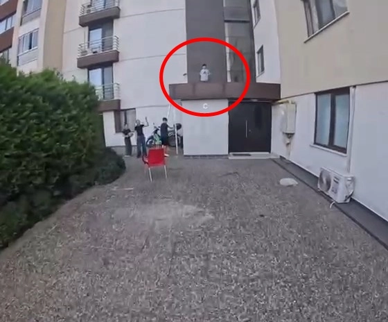 Nilüfer ilçesinde arkadaşları ile oyun oynayan bir çocuk, bina girişindeki damda mahsur kaldı. O sırada binaya sipariş getiren kuryeyi gören arkadaşları yardım istedi. Kurye, önce siparişini teslim etti ardından çocuğu kaldığı yerden merdivenle kurtardı. O anlar kuryenin kask kamerasıyla görüntülenirken, çocuklar, arkadaşlarını kurtaran kuryeye teşekkür etti. (DHA)
