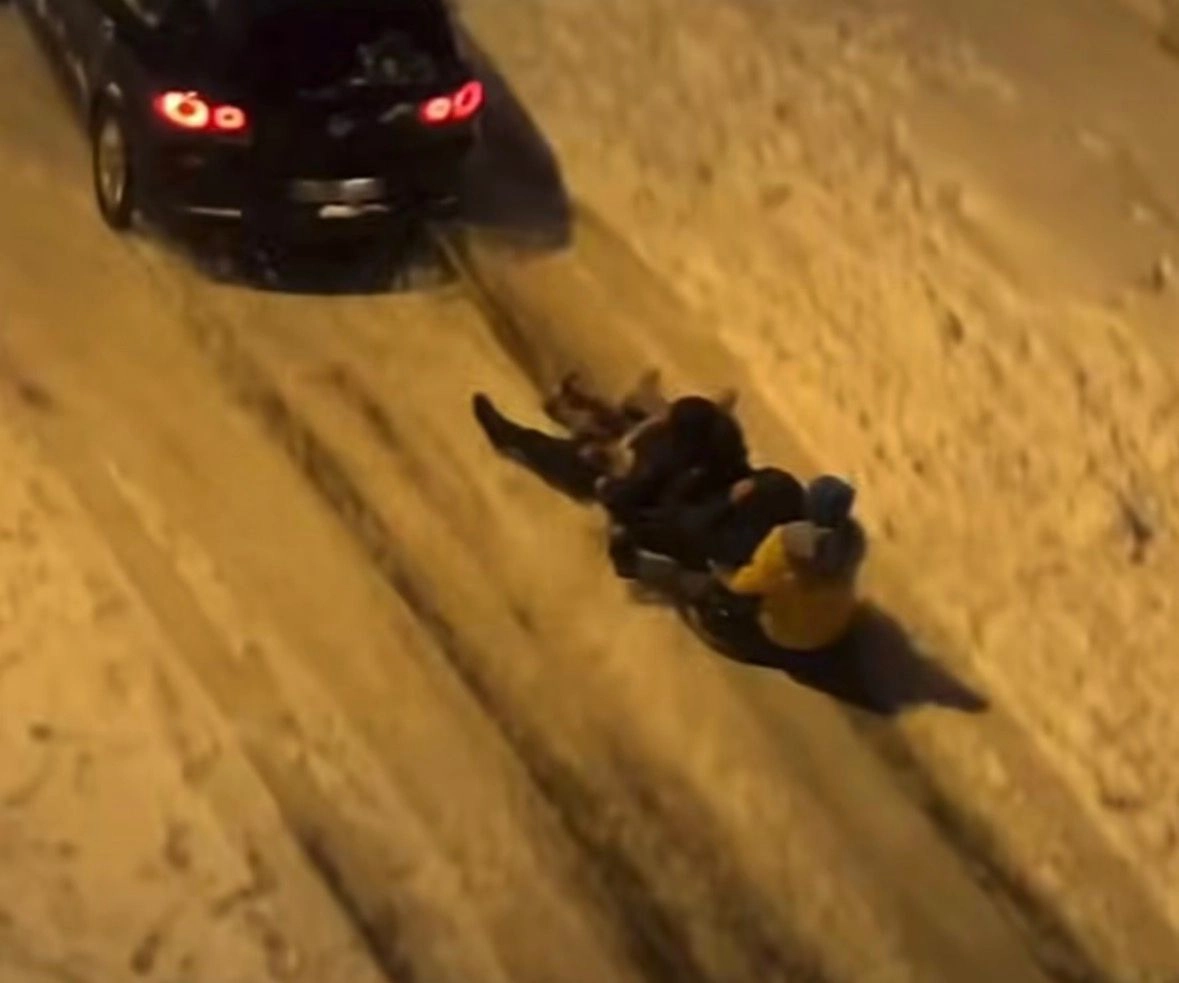 Yücel ARSLANTEKE/ÜNYE (Ordu), (DHA)- ORDU'nun Ünye ilçesinde etkili olan kar yağışı ile birlikte çok sayıda kişi cadde ve sokaklarda müzik eşliğinde dans edip, araçların arkasına bağladıkları kızaklarla kayıp, eğlendi.