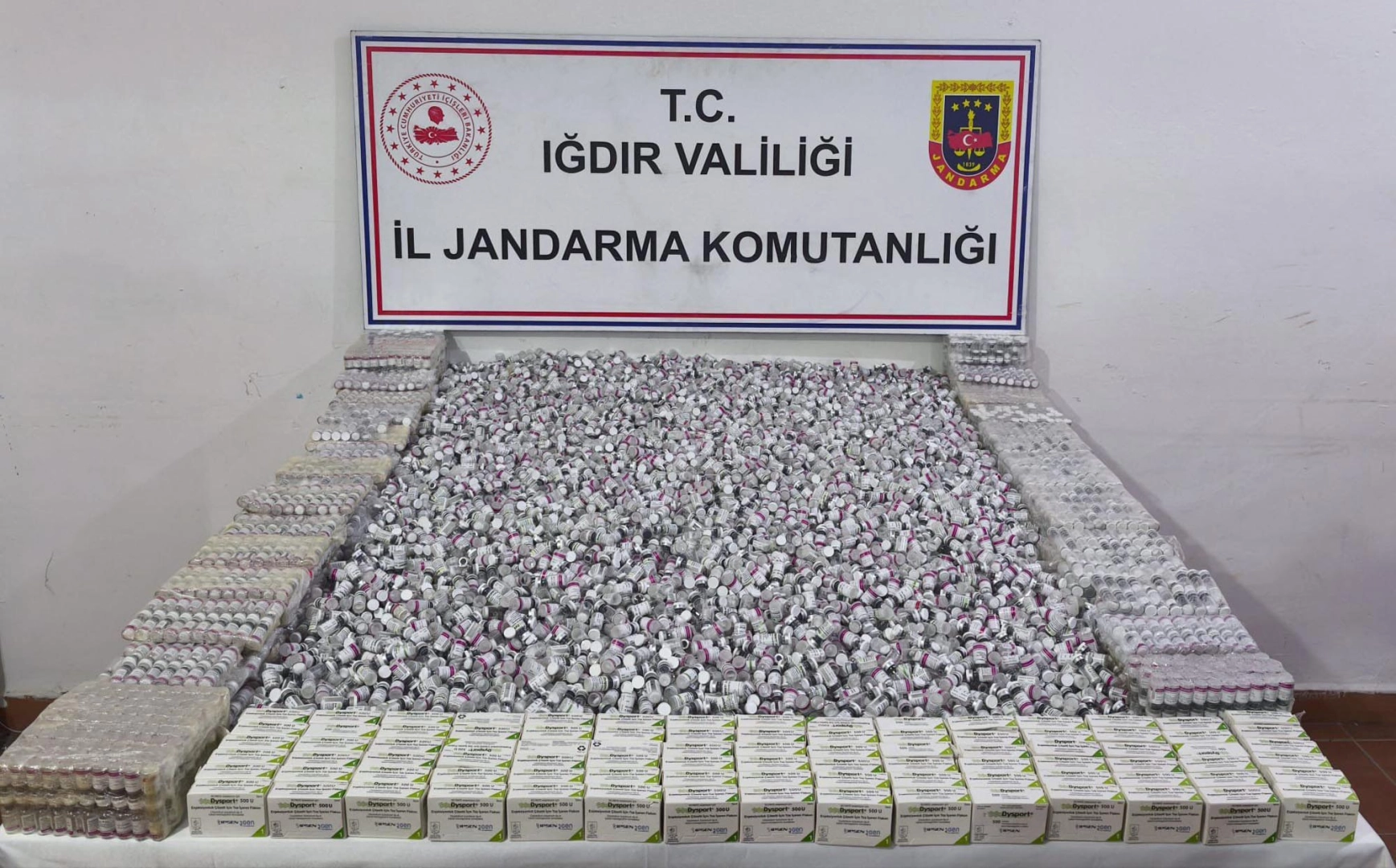 Özkan AYDIN/IĞDIR, (DHA)- IĞDIR’da güzellik merkezleri üzerinden piyasaya sürülmek istenen 56 milyon 700 bin lira değerindeki 12 bin 600 adet kaçak botoks ilacı ele geçirildi.
