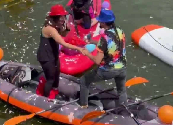 Yusuf YILDIZ- Eser PAZARBAŞI/ADANA, (DHA)- ADANA’da 13’üncüsü düzenlenen Uluslararası Adana Portakal Çiçeği Karnavalı kapsamında Seyhan Nehri’nde düzenlenen ‘su korteji’ renkli görüntüler oluşturdu. Korteje kanoyla katılan Bünyamin Türk, sevgilisi Betül Sakınan'a evlilik teklifi etti.Binlerce insanın sokaklarda kutladığı Uluslararası Adana Portakal Çiçeği Karnavalı, üçüncü gününde de çeşitli etkinliklerle sürdü. Turuncu ve yeşil renklerdeki kurdeleler ile çiçeklerle süslenen onlarca kano, gondol ve tekne Seyhan Nehri’ne indirildi. Karnavalın buluşma noktası olan Merkez Park’ta eğlenen katılımcılar, kortejin başlamasıyla birlikte nehir kıyısında yoğunluk oluşturdu. Su kortejinde, süslenmiş tekneler ve kanolar nehirde süzülerek ziyaretçileri selamladı. Bazı kanocular da akrobatik hareketleriyle ilgi odağı oldu. Ziyaretçiler, cep telefonlarının kameralarıyla bu renkli ve coşkulu anları ölümsüzleştirdi.Korteji izlemeye katılanlardan Nimet Türker Yücekaya, “Adana zaten çok renkli bir şehir, Portakal Çiçeği Karnavalı ile daha da renklendi. Adana insanı zaten çok sıcakkanlıdır, dışarıdan gelen misafirlere de şu an o sıcakkanlılığını hissettiriyor. Su korteji her yıl düzenleniyor, her sene daha renkli görüntüler sergiliyor” dedi.Karnavalda, kanoyla korteje katılan sporculardan Bünyamin Türk, 7 aylık sevgilisi Betül Sakınan’a evlenme teklifi etti. Sevgilisinden ‘Evet’ cevabı alan Türk, “Sürpriz bir evlilik teklifi yapmak istiyordum, bu kortejde görevli olan herkes benim arkadaşım olduğu için hep birlikte gizli bir şekilde organize ettik, sürprizimi yaptık evet cevabımızı kaptık" diye konuştu. Evlilik teklifi alacağını hiç beklemediğini söyleyen Sakınan ise gelen teklif karşısında çok duygulandığını ve bunun asla unutamayacağı bir an olduğunu belirtti. (DHA)