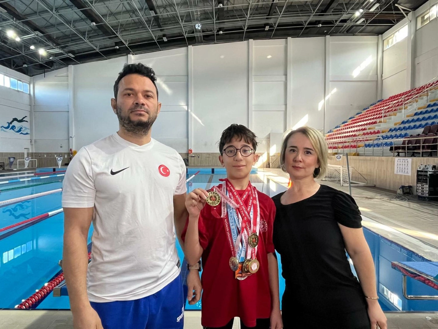 Yağmur ÖNGÜN/İZMİR, (DHA)- İZMİR'de, raşitizm (kırılgan kemik) hastası olan Kayra Bozgeyik (13), Okul Sporları Para Yüzme Yıldızlar Türkiye Şampiyonası'nda yarıştığı 5 branşta altın madalya kazanarak Türkiye birincisi oldu. Azmi ve disipliniyle engelleri aşan Bozgeyik, hedefinin ise Avrupa ve dünya şampiyonluğunu elde etmek olduğunu söyledi.