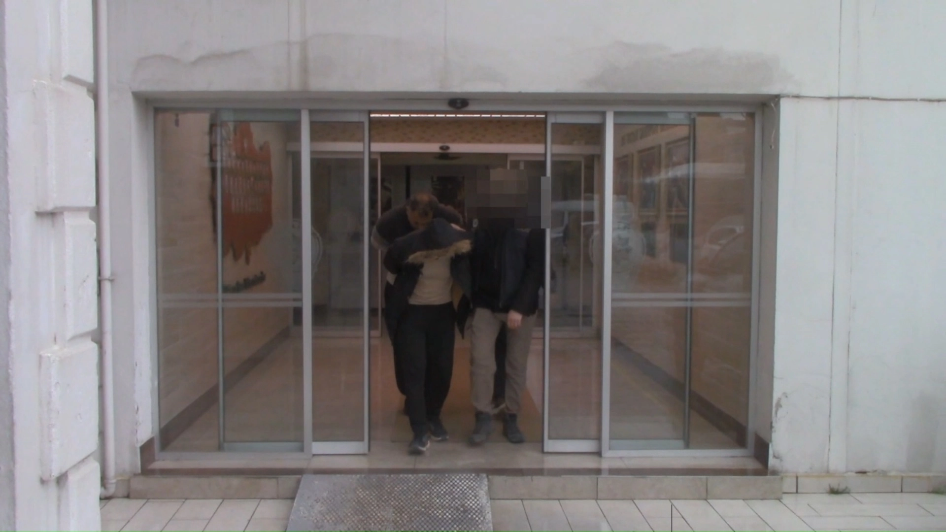 Emniyetteki işlemlerinin ardından adliyeye sevk edilen şüphelilerden 4’ü Geri Gönderme Merkezi’ne teslim edilirken, 2 şüpheli çıkarıldıkları mahkeme tarafından tutuklanarak cezaevine gönderildi. (DHA)