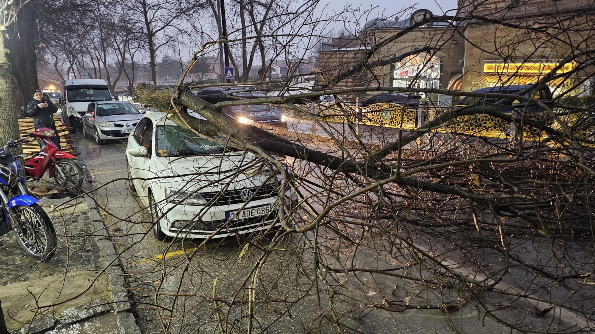 Kuvvetli fırtına akşam saatlerinde Edirne il merkezinde de etkili oldu. Sağanak yağışın ardından gelen fırtına hayatı olumsuz etkiledi. Karaağaç Lozan Caddesi, Kıyık Caddesi ve Atatürk Bulvarı üzerinde fırtınaya dayanamayan ağaçlar devrildi. Kıyık Caddesi’nde park halindeki bir otomobilin üzerine devrilen ağaç nedeniyle araçta maddi hasar oluştu. Atatürk Bulvarı’nda devrilen ağaç nedeniyle trafikte aksamalar yaşandı.