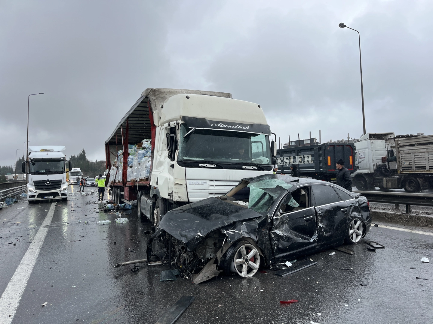 Kaza, saat 12.00 sıralarında TEM Otoyolu’nun İzmit ilçesi geçişi Kuruçeşme Fatih Mahallesi mevkisi Çınarlıdere Viyadüğü’nde meydana geldi. İstanbul yönüne giden 3 otomobil, 2 TIR ve minibüs yağmur nedeniyle kayganlaşan yolda çarpıştı. Kazada otomobillerden birindeki 3 kişi yaralandı. Diğer sürücülerin 112 Acil Çağrı Merkezi’ne ihbarı üzerine kaza yerine sağlık ve jandarma ekipleri sevk edildi. Yaralılar, sağlık personelinin ilk müdahalesinin ardından hastaneye kaldırılarak tedaviye alındı.