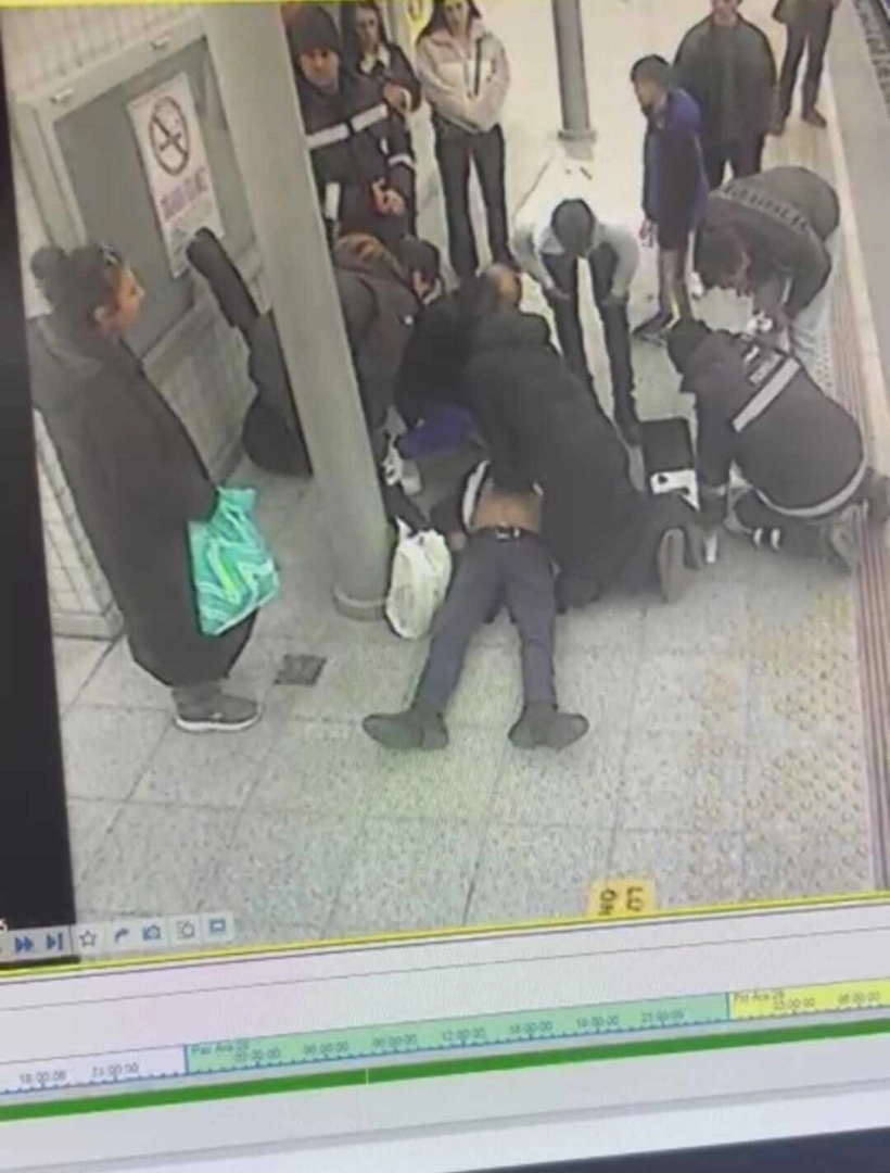 Mustafa İÇ/ ÇİĞLİ(İzmir), (DHA)- İZMİR’in Çiğli ilçesinde İzmir Banliyö Sistemi (İZBAN) trenini beklerken kalbi duran hastaya ilk müdahale peronda bekleyen bir sağlık çalışanı tarafından yapıldı. O anlar güvenlik kamerasına yansıdı.