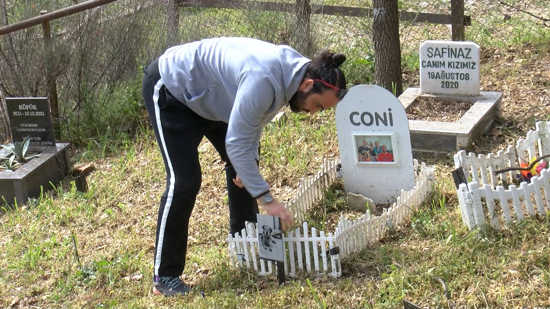 'Coni' isimli köpeğini geçen yaz kaybeden Barış Can Kalan, "Bayramda bizim ailemizin ferdi olan 'Coni'yi ziyaret etmeye geldim. Hem de lodos, yağmur ve kardan sonra mezarını kontrol etmek istedim. Hayvanlar hayatımızın büyük bir parçasını kaplıyorlar. Bizim acımız aslında çok yeni. Geçen yaz, daha bir sene olmadı. Bu, 14 sene sonra onsuz geçireceğimiz ilk bayram. Ama sanırım ailemizin bir ferdi olduğu için bayram haricinde de sıklıkla geliyorum, kontrol ediyorum. Yine bundan sonraki bayramlarda da büyük ihtimalle geleceğim" dedi. (DHA)