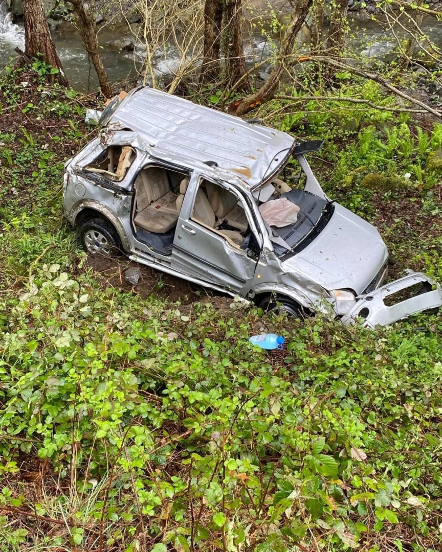 Erhan SARI/BORÇKA (Artvin), (DHA)- ARTVİN'in Borçka ilçesinde uçuruma yuvarlanan hafif ticari aracın yaralanan sürücüsü Hasancan Yıldırım ile kurtarma çalışmaları sırasında fenalaşan orman muhafaza memuru Gökhan Gökaydın hastaneye tedaviye alındı.