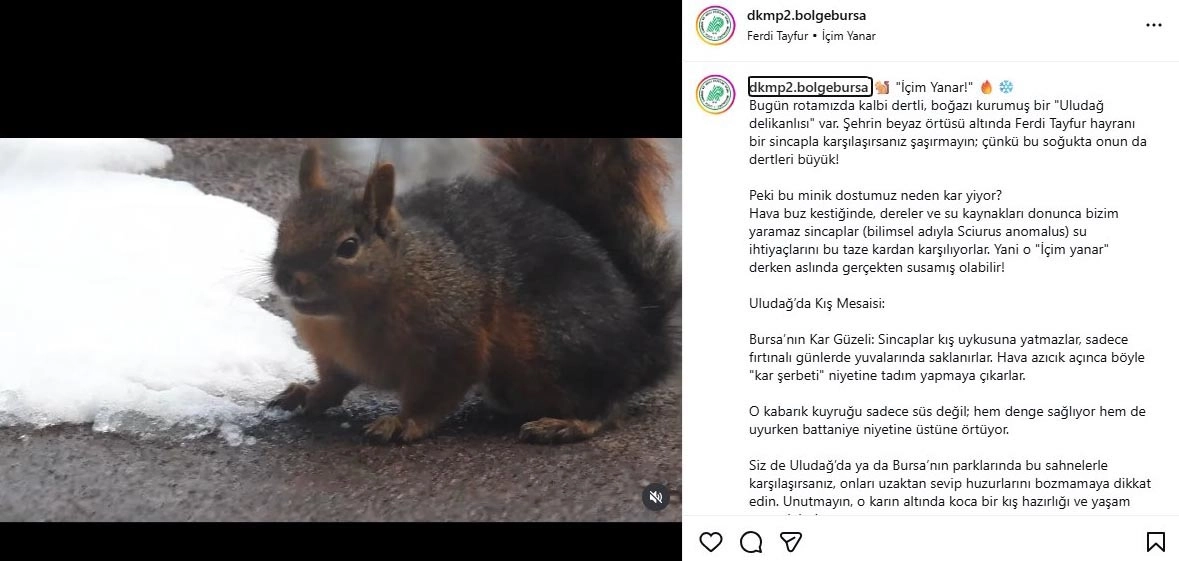 Uludağ'da kar ile susuzluğunu gideren sincap kamerada / Ek fotoğraf