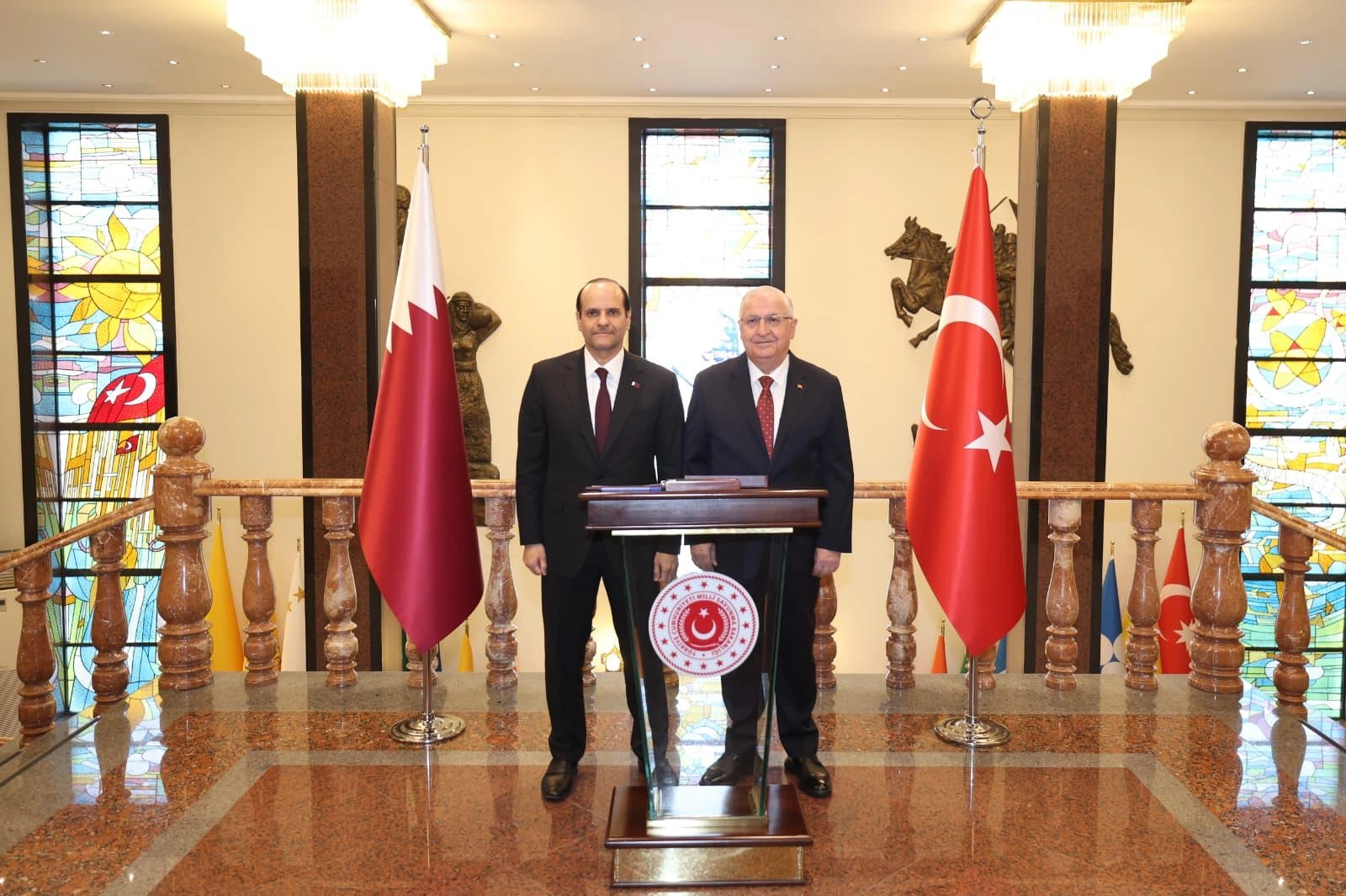 Bakanlığın sosyal medya hesabından yapılan açıklamada, "Milli Savunma Bakanı Yaşar Güler, Ankara'ya resmi ziyaret gerçekleştiren Katar Başbakan Yardımcısı ve Savunma Bakanı Şeyh Saud Bin Abdurrahman Bin Hasan Bin Ali Al Sani ile Milli Savunma Bakanlığında bir araya geldi. Bakan Yaşar Güler ve konuk Bakan baş başa görüşme sonrası heyetler arası görüşmeye başkanlık etti. Heyetler arası görüşmede Bakan Yaşar Güler’in beraberinde Bakan Yardımcıları Alpaslan Kavaklıoğlu ve Musa Heybet de yer aldı" denildi. (DHA)
