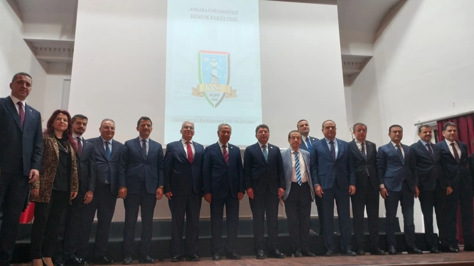 Bakan Tunç, adaletin tecellisini gerçekleştirebilmek için en önemli unsurun insan unsuru olduğunu vurgulayarak, "Fiziki mekanlara, teknolojik imkanlara, ihtiyaca cevap veren mevzuata, kanunlara ihtiyaç vardır. Ama kanunlar adalet için bir araçtır. Asıl olan hukuktur. Hukukun amacı, adaleti gerçekleştirmektir. Kanunlar değişebilir ama hukuk değişmez, adalet değişmez. Kanunlar yeni ihtiyaçlara göre uyarlanarak adaletin adil bir şekilde tecelli etmesini sağlar. Ankara Üniversitesi Hukuk Fakültemizin 100’üncü yılında ‘Hukukun Dönüşümü’ temasıyla düzenlenen paneller, sempozyumlar bu anlayışı yansıtıyor. Gelişen çağda dijital teknolojiler, yeni suç tipleri, ticaretin gelişmesi, göçler gibi unsurlar yeni sorunları ortaya çıkarıyor. Bu da yeni mevzuata ihtiyaç duyulmasını gösteriyor. Ülkemiz bu anlamda son çeyrek asırda temel kanunlarını yenilemiştir. Ceza kanunlarımız, borçlar kanunlarımız, özel hukuk mevzuatımız yenilendi. Yeni yargı paketleriyle de sürekli bir yenilenme içindeyiz" ifadelerini kullandı.