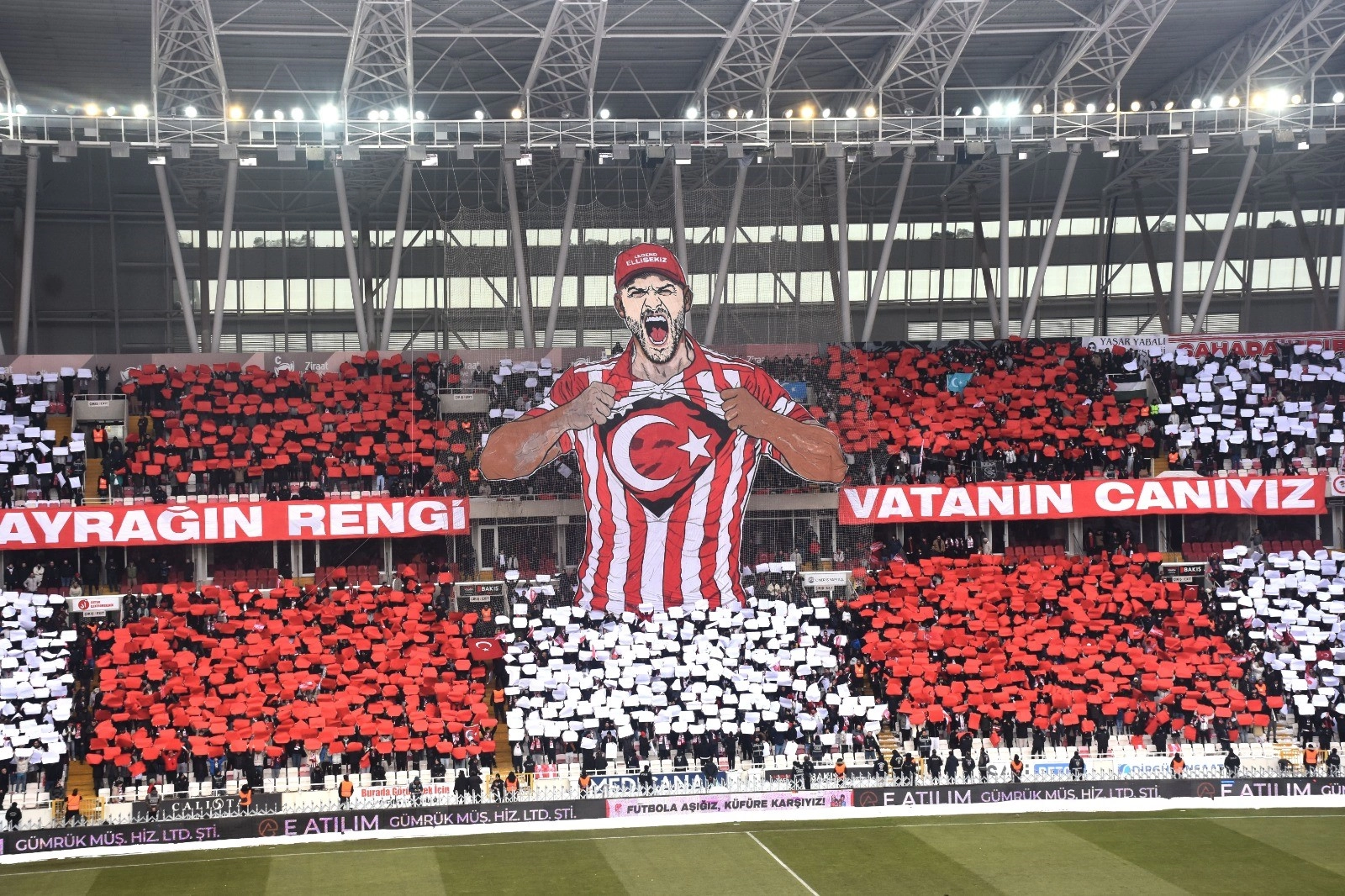 Sivassporlu taraftarlardan Türk bayraklı koreografi